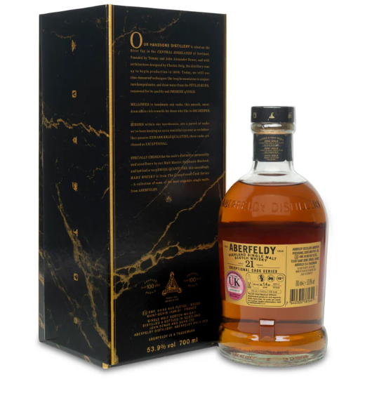 A decadently rich dram with notes of rich ripe cherries and fresh blackberries, intertwined with Aberfeldy’s signature honeyed smoothness.