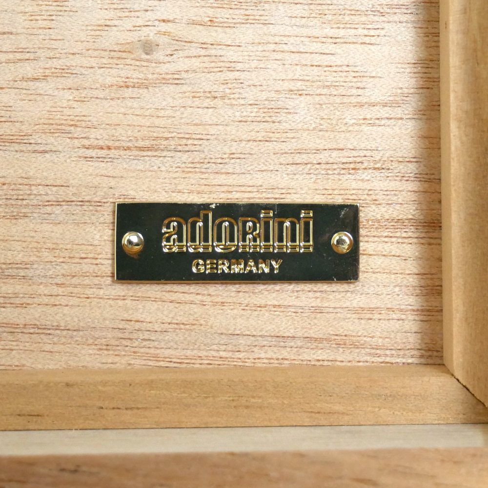 The Adorini Humidor Specially Selected Grande is an elegant Grande-sized humidor from the Specially Selected collection, newly presented in 2025. The name 'Specially Selected' stands for carefully selected real wood veneers of European origin.
