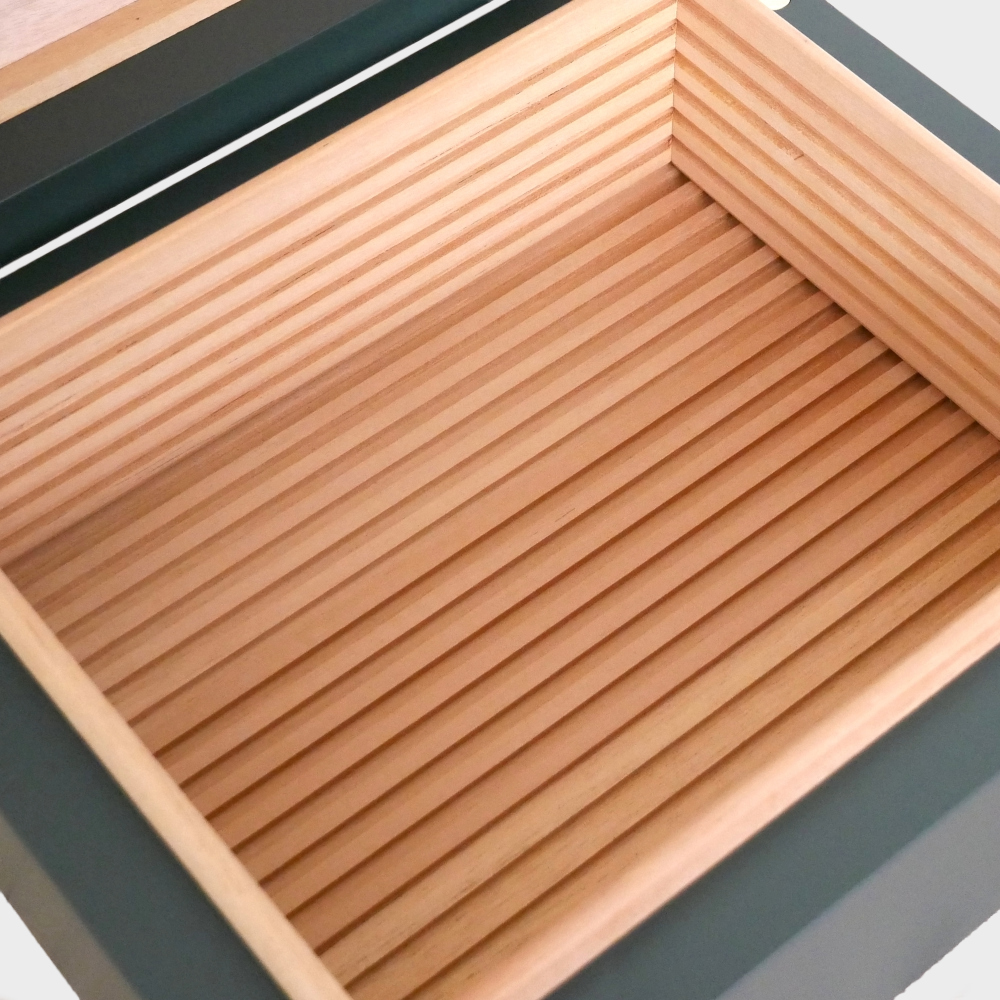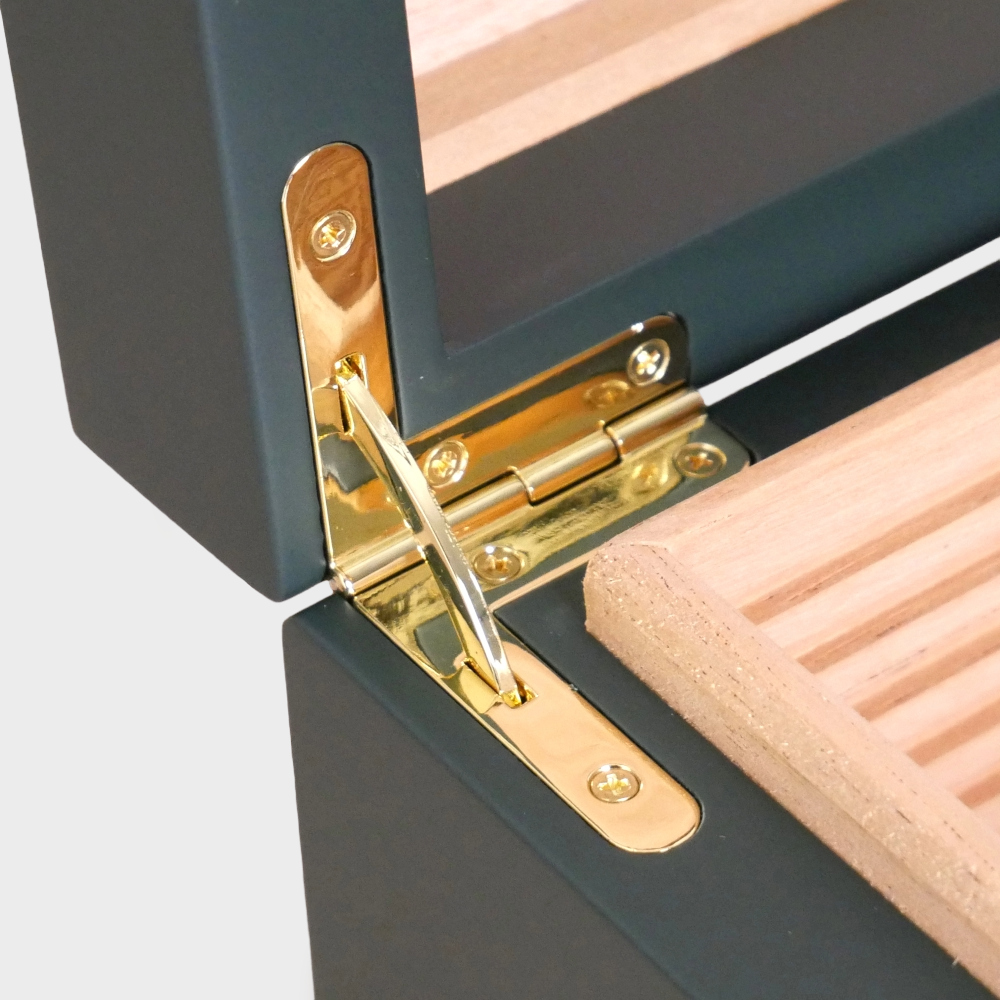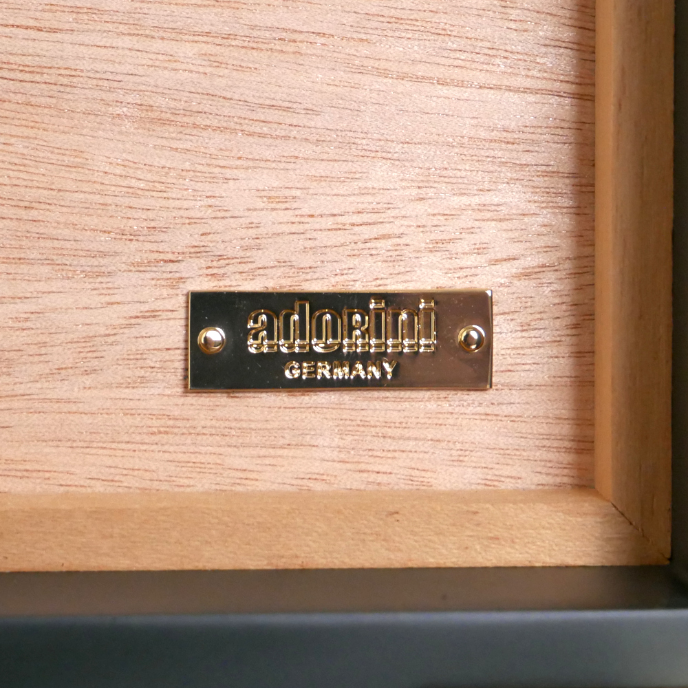 The Adorini Humidor Medium Deluxe is part of the new Adorini collection in four exciting colour variations. This model captivates with its elegant, timeless dark green colour, which is enhanced by golden elements on the inside. Particularly noteworthy is the matte green soft-touch finish, which extends beyond the outer edge and is also visible on the inside. This gives the humidor a harmonious and elegant overall look.