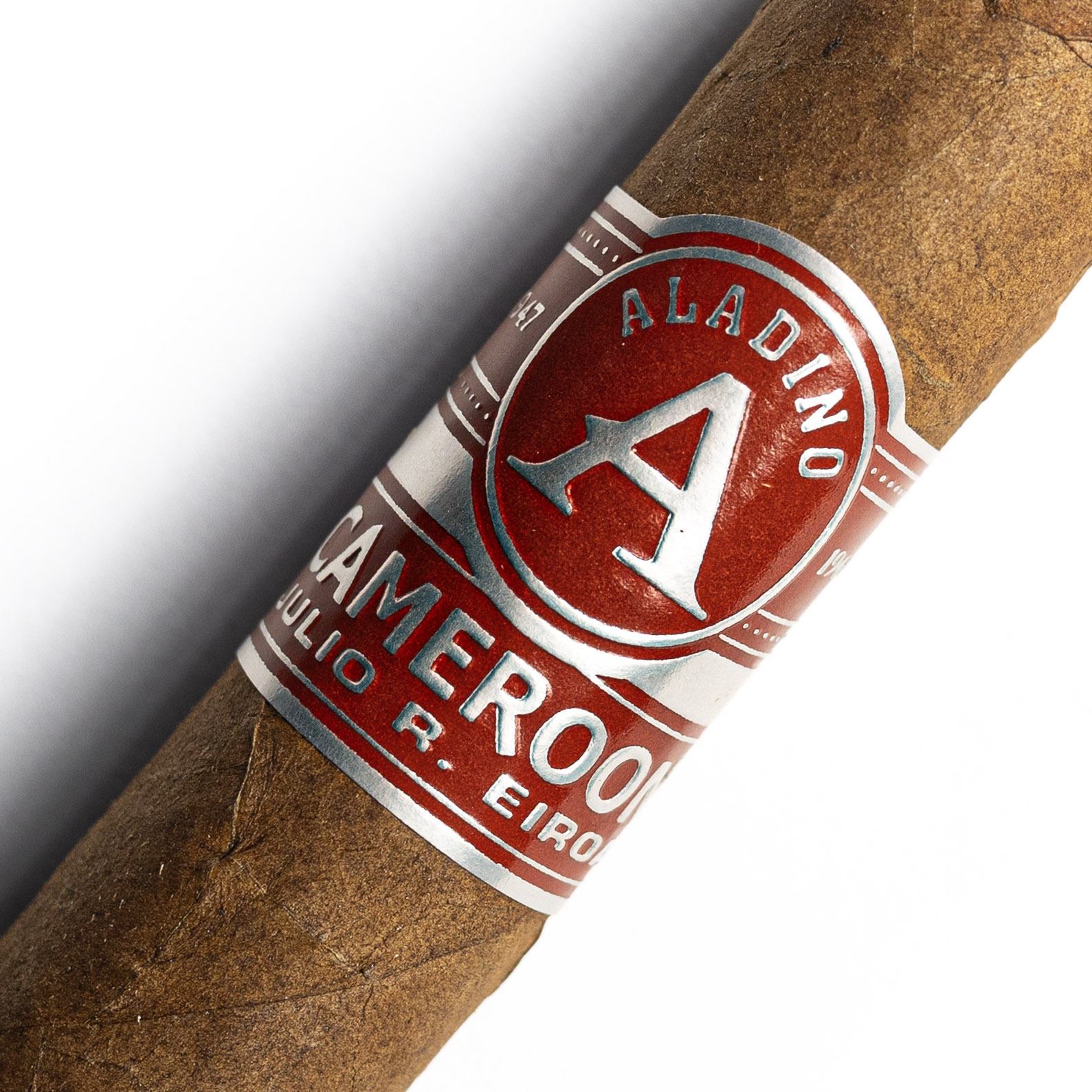 The Aladino Cameroon Queens Perfecto is one of the six sizes of the line of the same name produced by JRE Cigars. It is a Honduran puro, made using Corojo tobaccos for filler and binder, and from a Cameroon seed grown at JRE Tobacco Farm, owned by the Eiroa family. The Cameroon line and the other Aladino products are made at the Fabrica de Puros Aladino in Las Lomas Jamastran, Honduras.