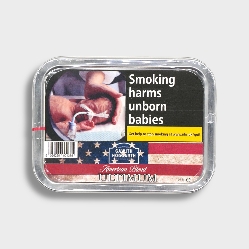 Gawith Hoggarth Ultimum is a ready-rubbed aromatic pipe tobacco featuring Black Cavendish, Virginia and Burley, topped with cherry and caramel. Packaged in a 50 g tin, it offers a mild to medium body, a sweet flavour profile and an easy-going smoke.