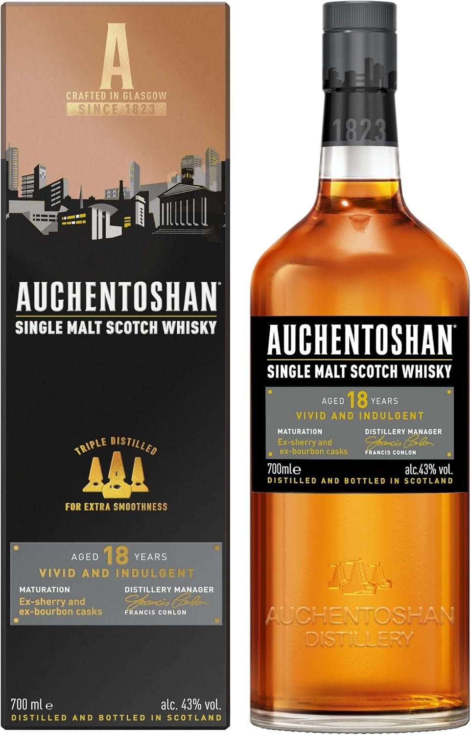 Auchentoshan (“ock-un-tosh-un”) is Glasgow’s original urban malt since 1823. It is Scotland’s only distillery to insist on triple distilling every single drop.