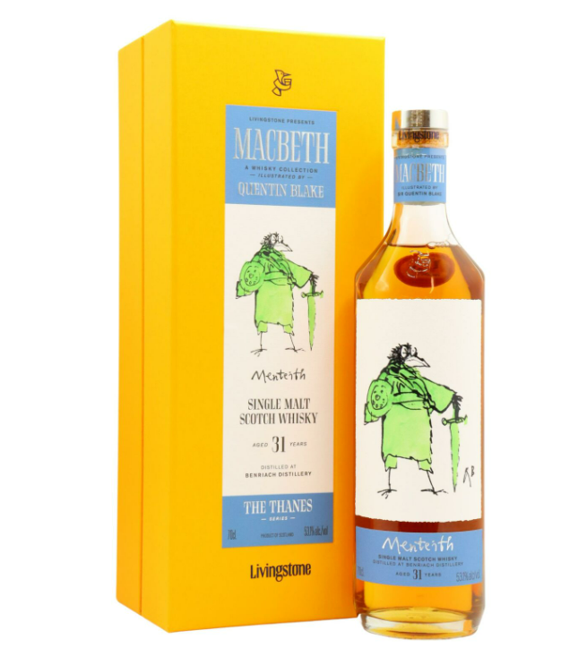 Each whisky represents a character from the Tragedy of Macbeth by William Shakespeare, with illustrations by Sir Quentin Blake and character notes by Dave Broom.