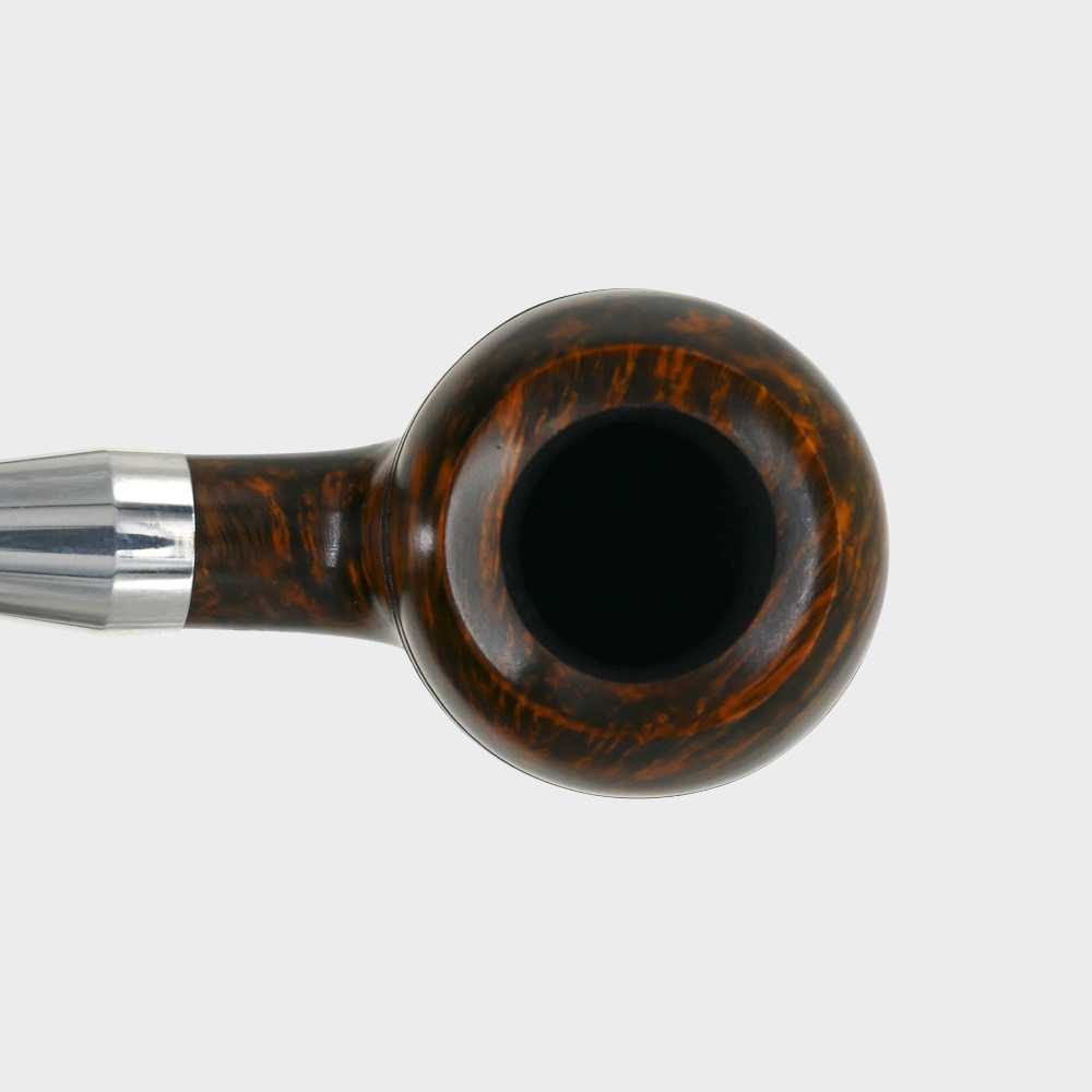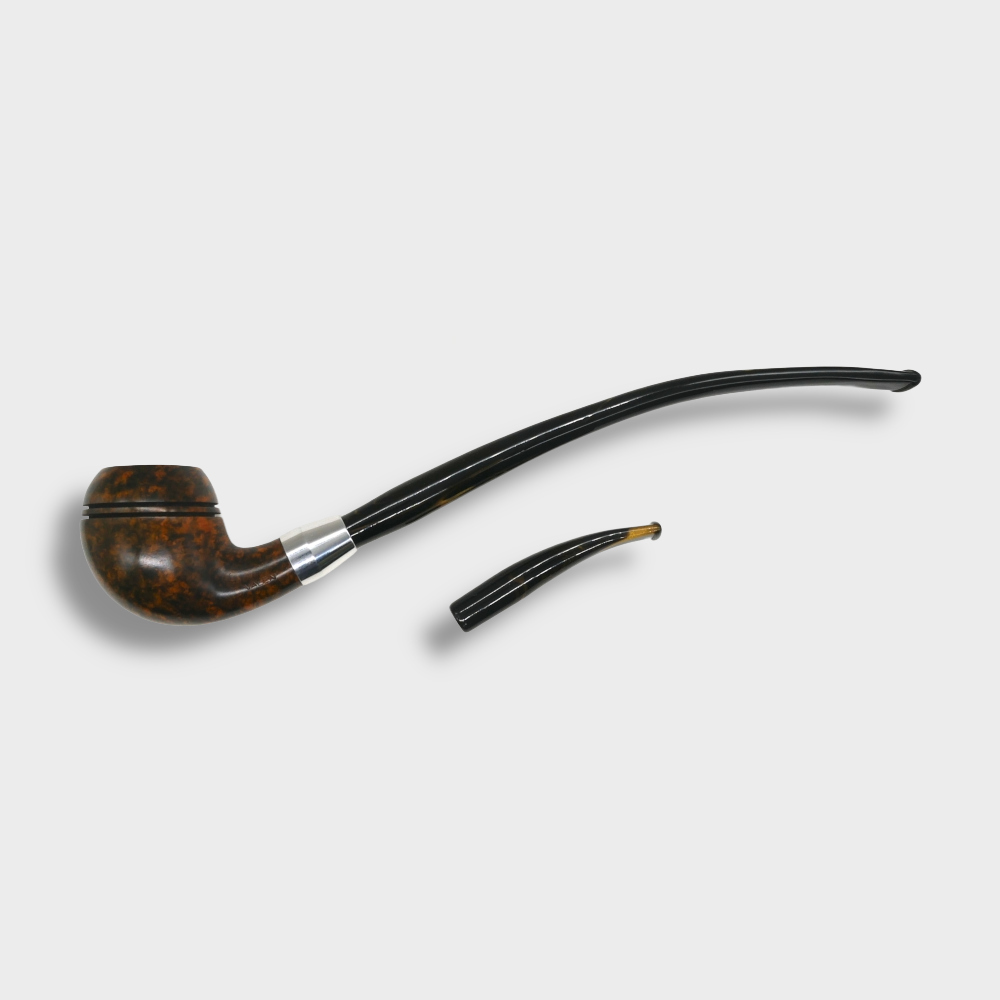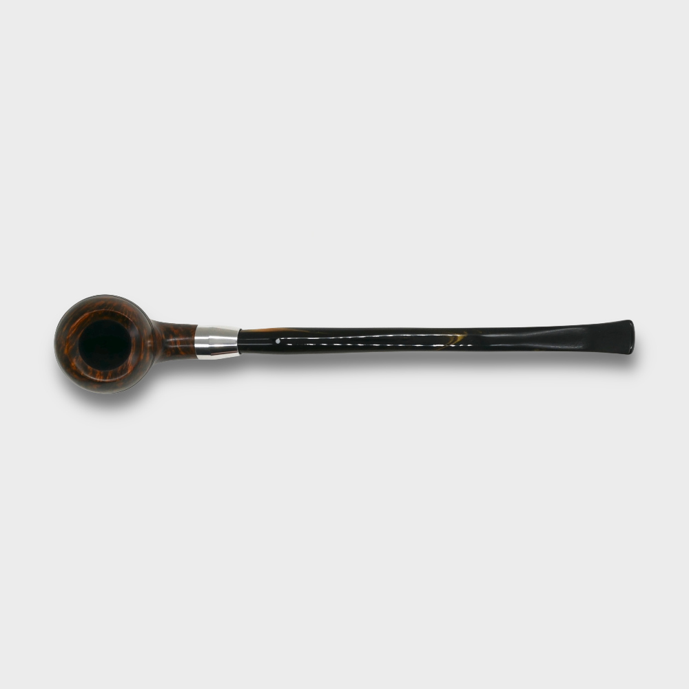 Elegant churchwarden pipe with a silver-coloured ring, combined with a long or short acrylic army-mount mouthpiece. You decide which version you prefer today - churchwarden or the classic way. Available in three different finishes, each in three shapes.