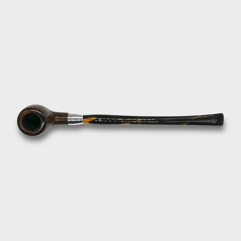 Elegant churchwarden pipe with a silver-coloured ring, combined with a long or short acrylic army-mount mouthpiece. You decide which version you prefer today - churchwarden or the classic way. Available in three different finishes, each in three shapes.