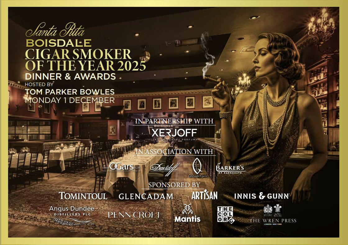 Founded by Boisdale in 2013 The Cigar Smoker of the Year Dinner has become the world’s most prestigious Cigar Awards Dinner outside of Havana, celebrating iconic cigars, cigar producers, cigar communicators, and cigar sommeliers in the company of cigar connoisseurs from the world over. Tom Parker Bowles will return as a host for this year's awards.