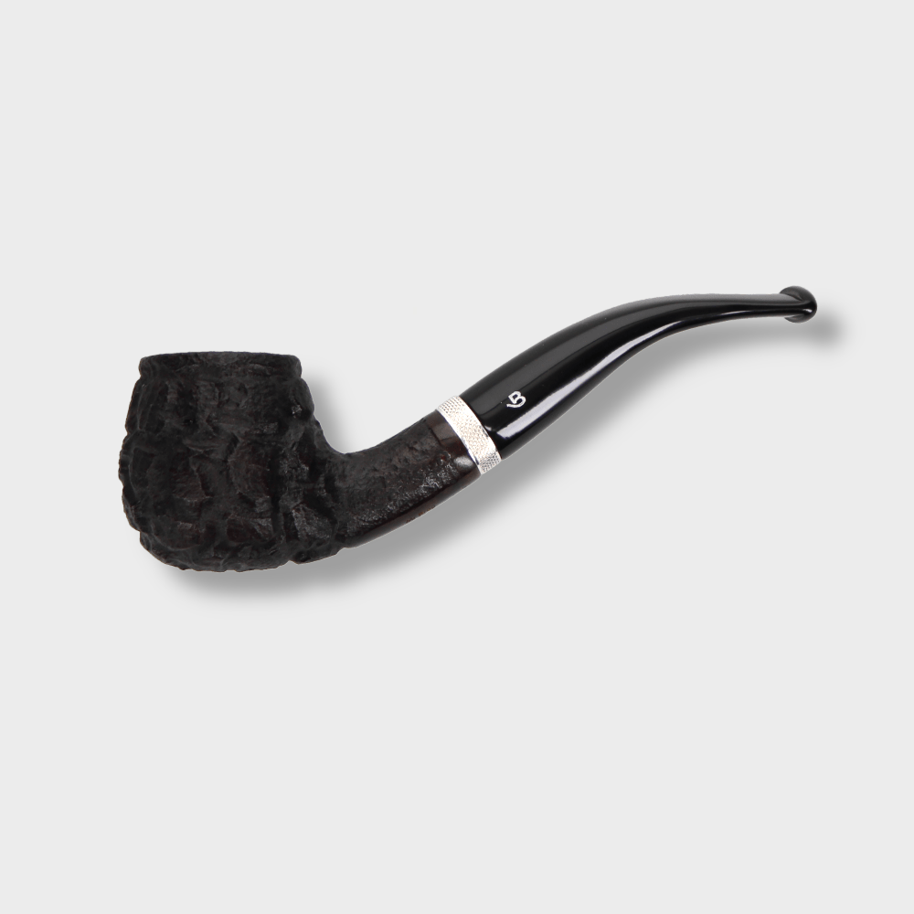 An elegant pipe handmade by high quality briar with a classic and timeless Bent Apple shape. Light, shapely has a pre-carbonised fireplace with a standard capacity. The shank was finished with a silver-plated ring with a rough surface. A bent, convergent stem with a 9mm filter has a wide bite and was made made of durable acrylic, the sign shows just that. Thanks to its parameters it will be suitable for experienced people as well as beginner pipe smokers.