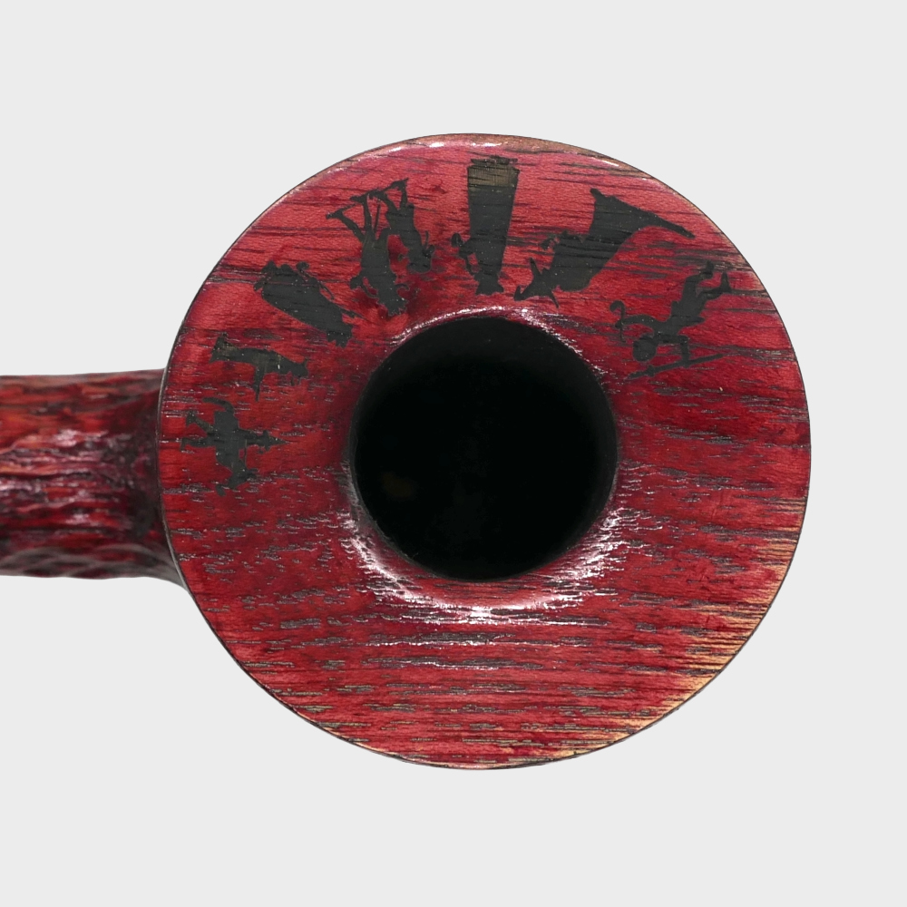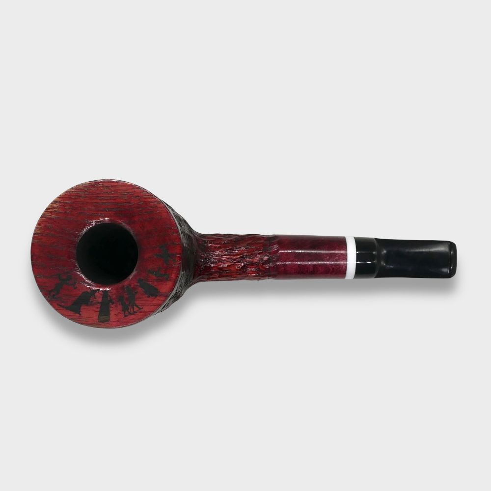 Rim decorated with graphics in the form of wanderers smoking his pipe.
