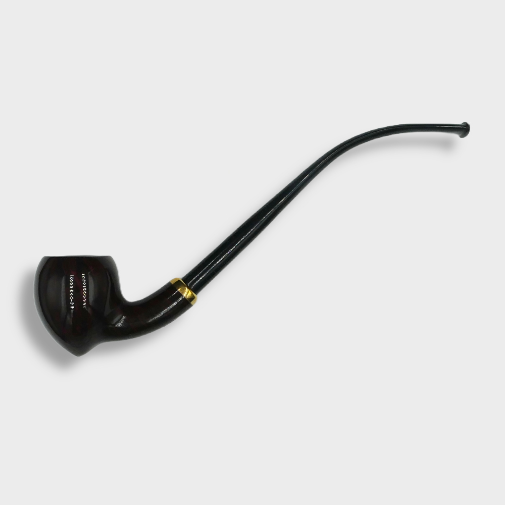 Elegant churchwarden type pipe with a rare bowl shape called "Acorn". Handmade in the workshop near Przemysl, Poland from Italian briar of extra class (Mimmo). Lightweight, graceful and enticing in its appearance, the curved shank of the pipe is finished with a brass ring, the long ABS stem has a place for a removable condenser (tobacco in the pipe can be smoked without it).