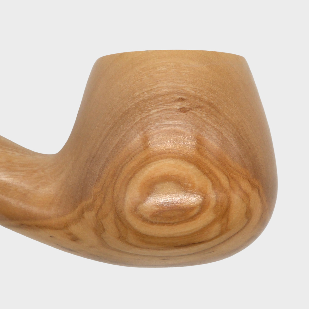 A one-of-a-kind, handcrafted pipe made from olive wood. The classic Bent Apple shape pairs beautifully with the natural warmth and grain of the olive wood, while the blue mouthpiece adds a distinctive finishing touch.