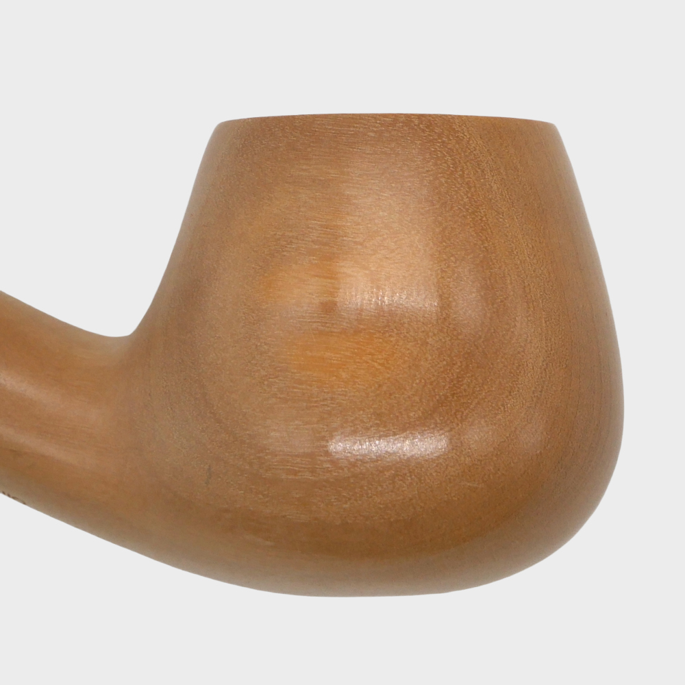 A one-of-a-kind, handcrafted pipe made from olive wood. The classic Bent Apple shape pairs beautifully with the natural warmth and grain of the olive wood, while the blue mouthpiece adds a distinctive finishing touch.