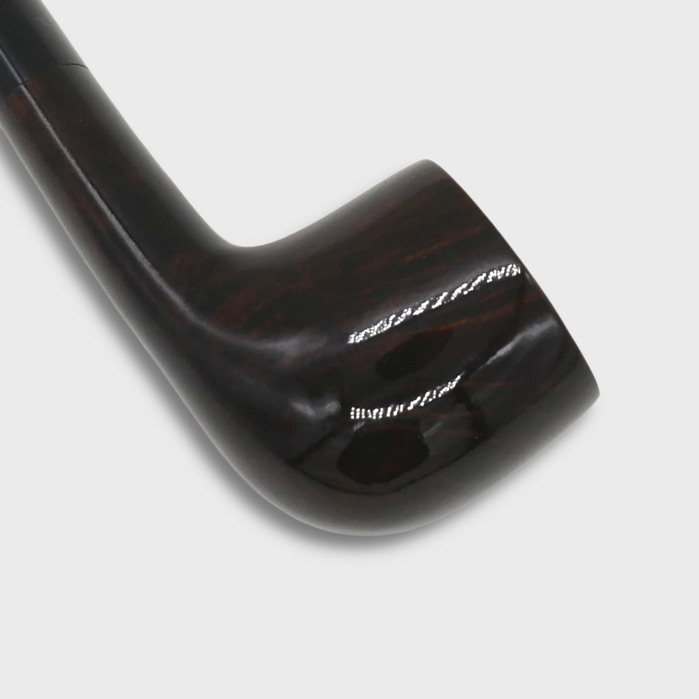An elegant pipe handmade by high quality briar with a classic and timeless Bent Apple shape. Light, shapely has a pre-carbonised fireplace with a standard capacity. The shank was finished with a silver-plated ring with a rough surface. A bent, convergent stem with a 9mm filter has a wide bite and was made made of durable acrylic, the sign shows just that. Thanks to its parameters it will be suitable for experienced people as well as beginner pipe smokers.
