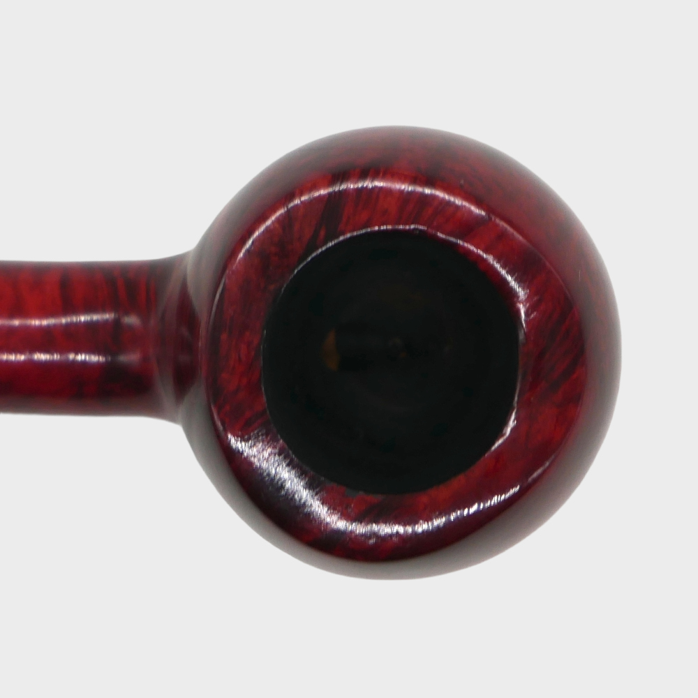 This pipe stands out for its compact proportions and remarkably light weight. It is fitted with a pre-carbonized chamber, a filterless ebonite mouthpiece, and a silver-plated metal ring.