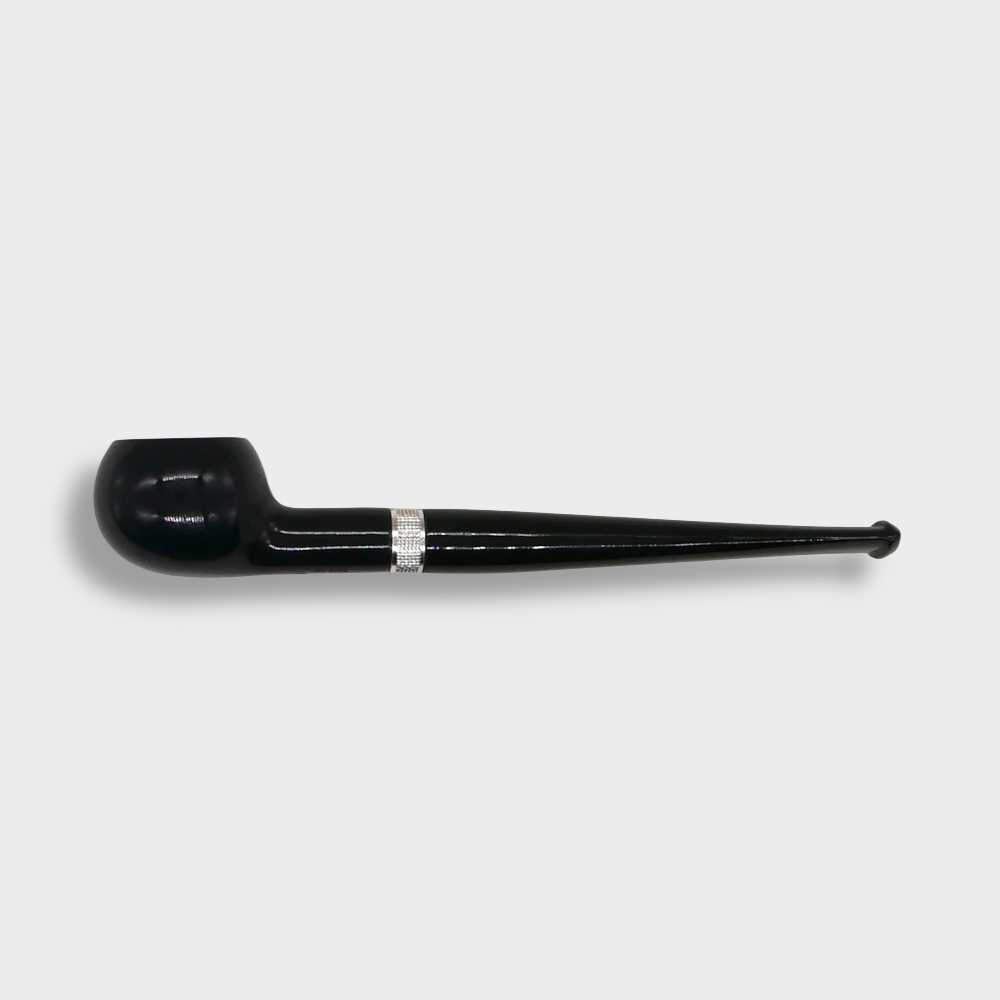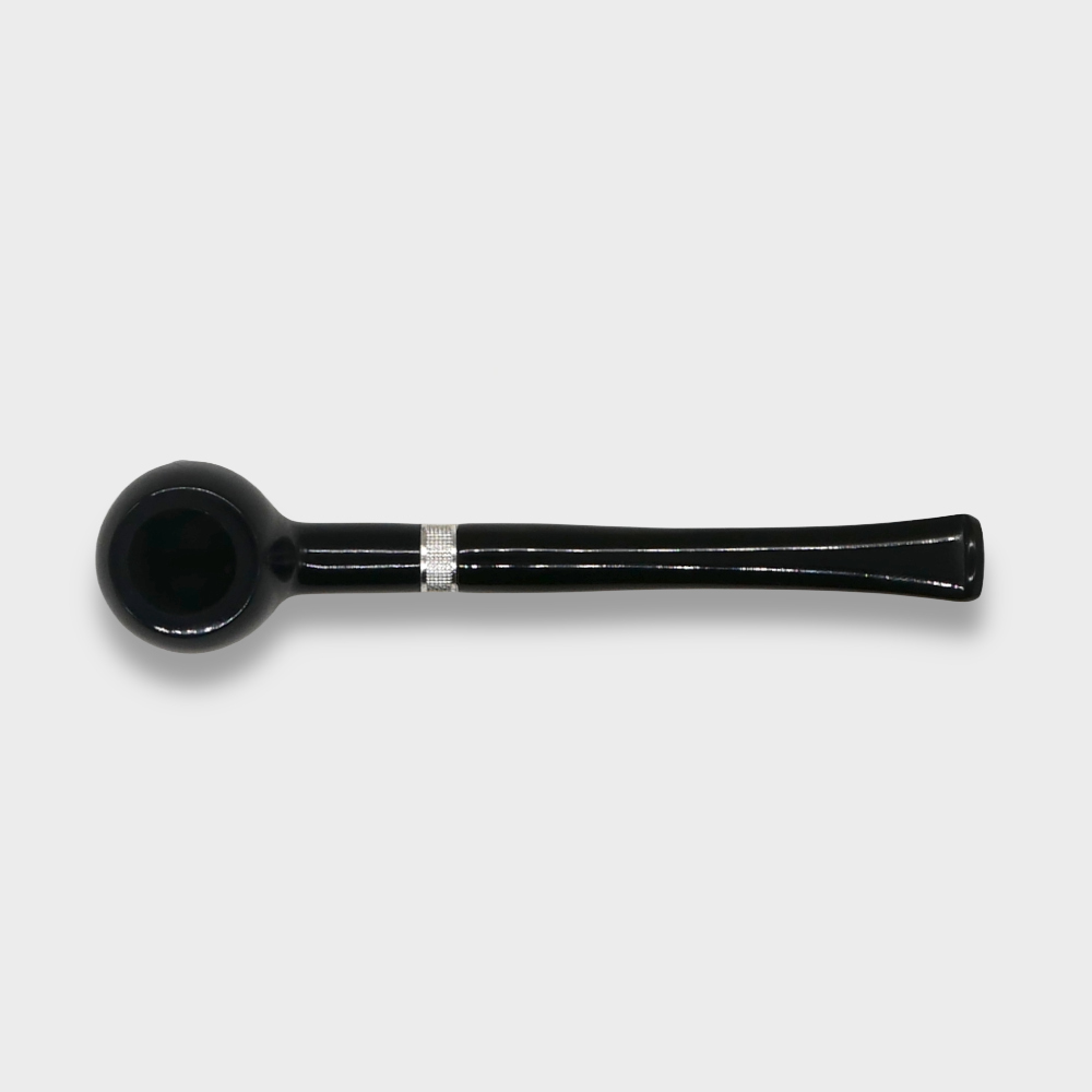 This pipe stands out for its compact proportions and remarkably light weight. It is fitted with a pre-carbonized chamber, a filterless ebonite mouthpiece, and a silver-plated metal ring.