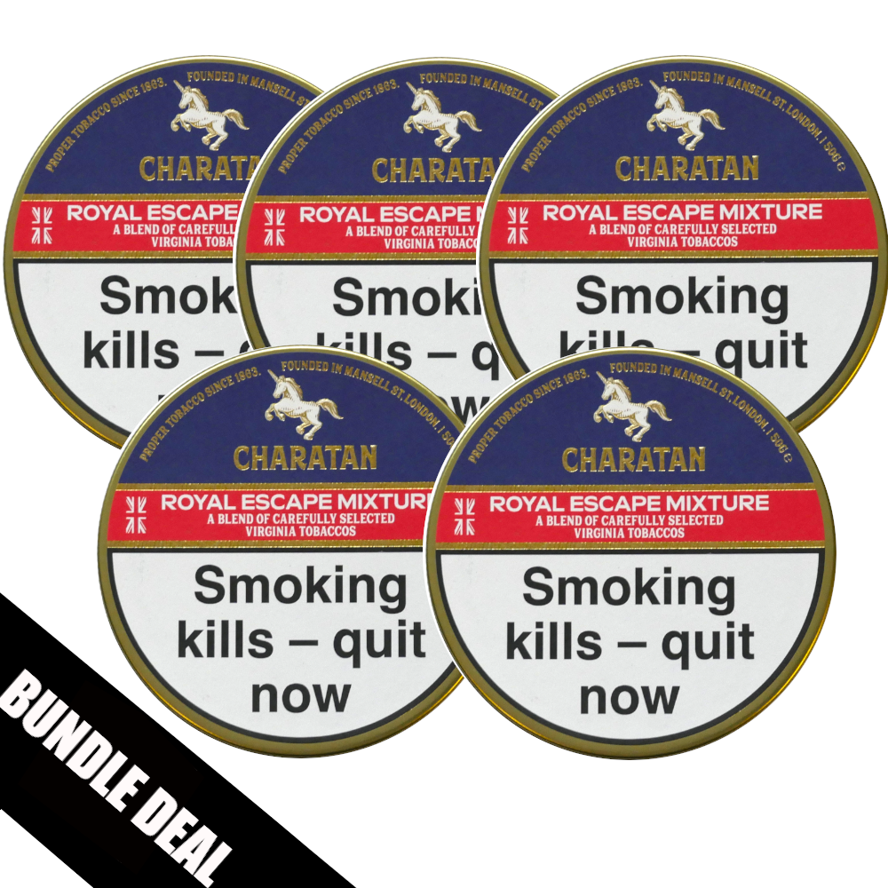 The Charatan Royal Escape is a high quality tobacco made from the best bronzed Virginia leaves. These are carefully conditioned and added to rich, heavy bodied Virginias. Finally a unique flavour is added to complete the blend and enhance the subtle piquant aroma.