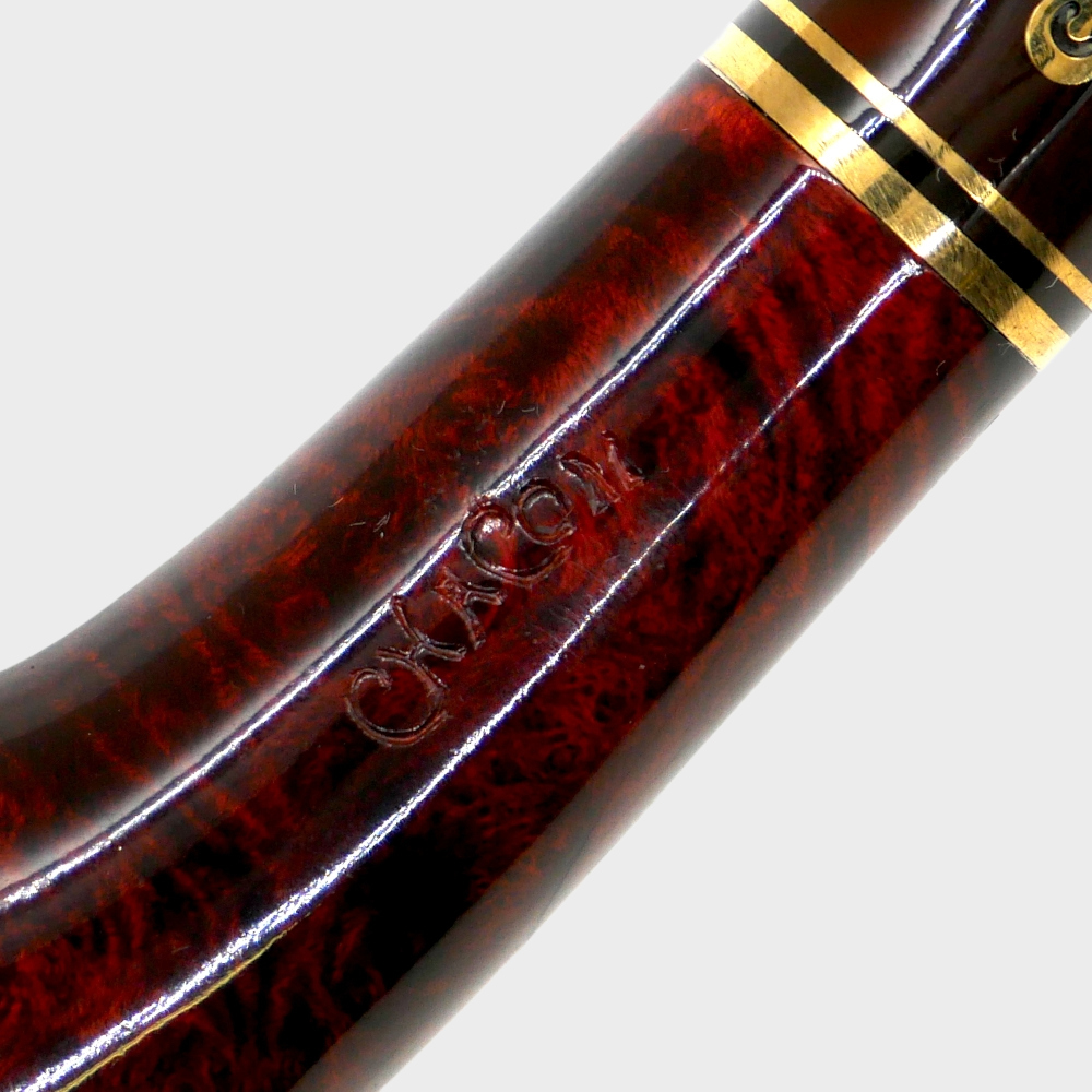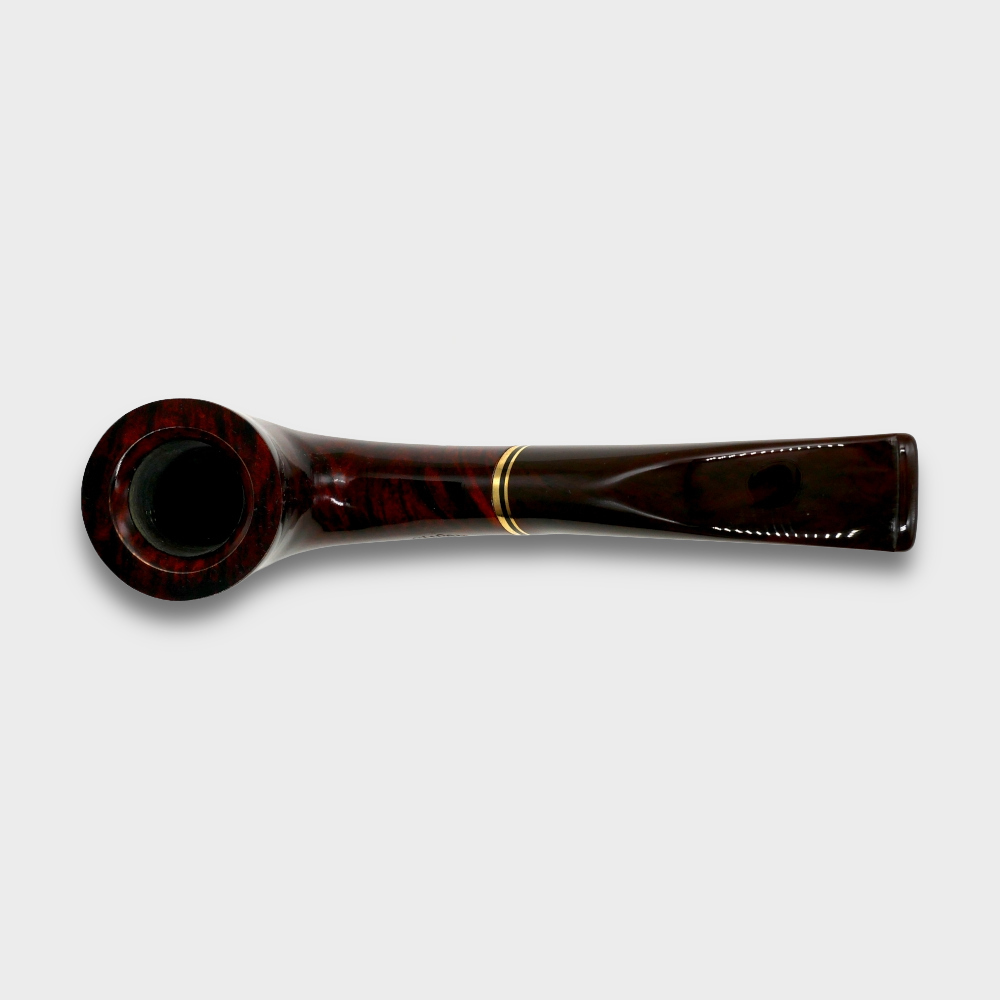 The Chacom Montbrillant is a beautiful pipe with a shiny brown finish and a cumberland-like acrylic stem linked with a beautiful triple brass band. This well-balanced pipe offers a comfortable grip.