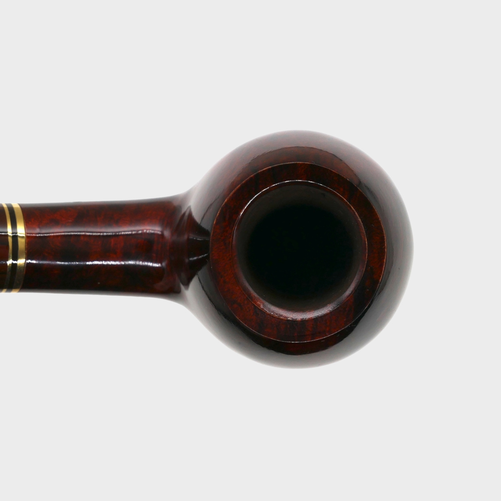 The Chacom Montbrillant is a beautiful pipe with a shiny brown finish and a cumberland-like acrylic stem linked with a beautiful triple brass band. This well-balanced pipe offers a comfortable grip.