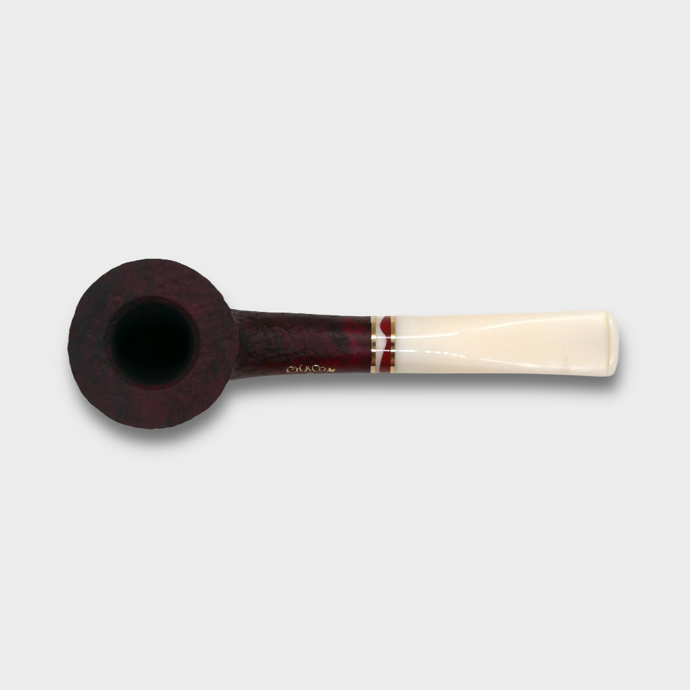 This elegant pipe features a handsome mahogany sandblasted finish that enhances the natural beauty of the briar, paired perfectly with an ivory-marbled acrylic stem and a smart brass-and-acrylic accent ring. Designed for versatility, it comes fitted with a 9mm filter and includes an adapter for those who prefer an open draw. A smooth, comforting smoke and a charming collector’s piece, the Christmas Pipe 2025 is an ideal companion for winter evenings and a standout addition to any pipe lover’s collection.