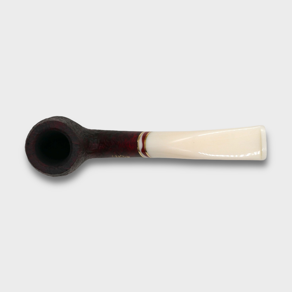 This elegant pipe features a handsome mahogany sandblasted finish that enhances the natural beauty of the briar, paired perfectly with an ivory-marbled acrylic stem and a smart brass-and-acrylic accent ring. Designed for versatility, it comes fitted with a 9mm filter and includes an adapter for those who prefer an open draw. A smooth, comforting smoke and a charming collector’s piece, the Christmas Pipe 2025 is an ideal companion for winter evenings and a standout addition to any pipe lover’s collection.
