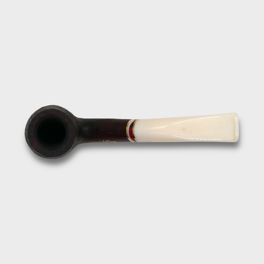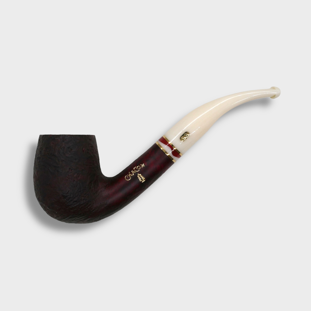 This elegant pipe features a handsome mahogany sandblasted finish that enhances the natural beauty of the briar, paired perfectly with an ivory-marbled acrylic stem and a smart brass-and-acrylic accent ring. Designed for versatility, it comes fitted with a 9mm filter and includes an adapter for those who prefer an open draw. A smooth, comforting smoke and a charming collector’s piece, the Christmas Pipe 2025 is an ideal companion for winter evenings and a standout addition to any pipe lover’s collection.