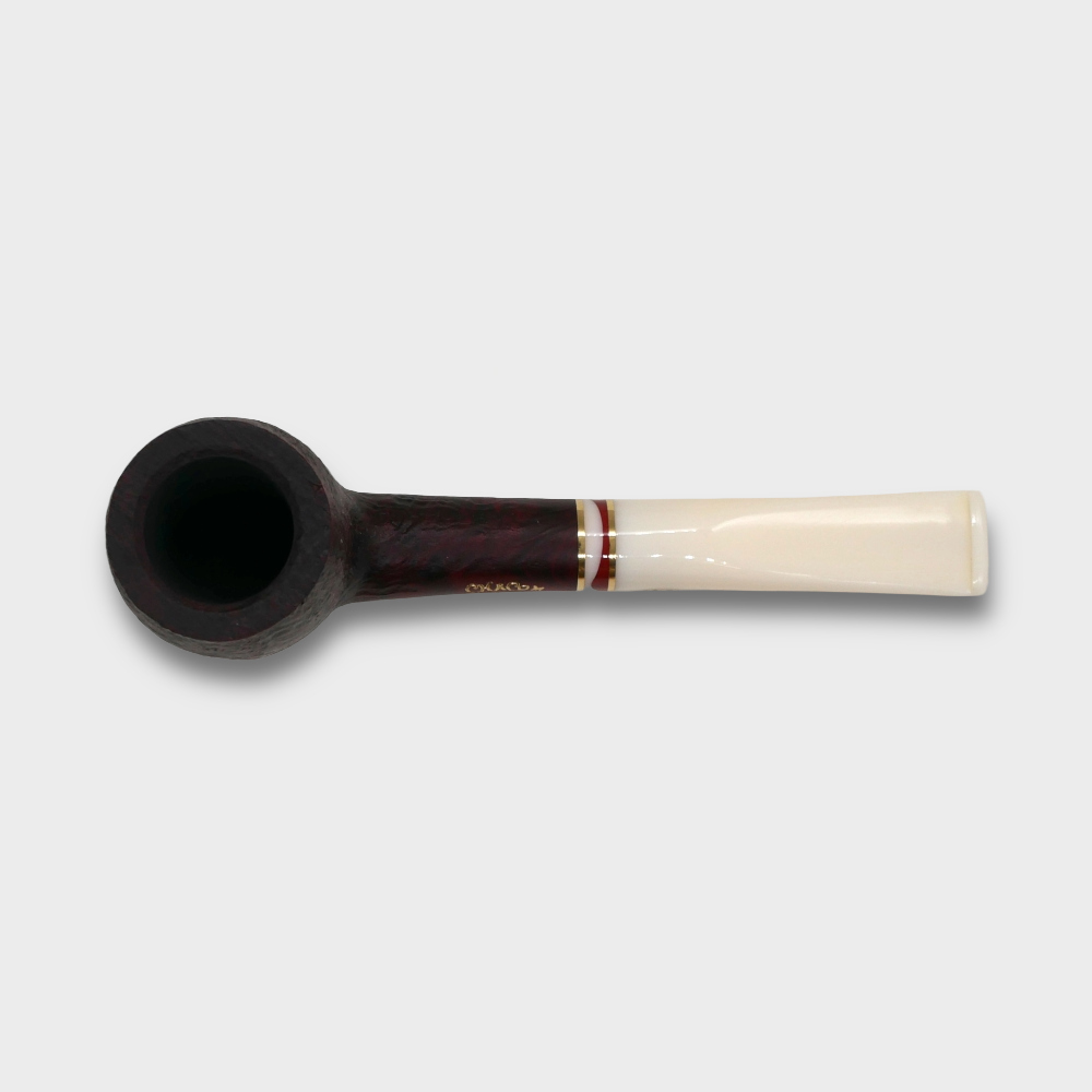 This elegant pipe features a handsome mahogany sandblasted finish that enhances the natural beauty of the briar, paired perfectly with an ivory-marbled acrylic stem and a smart brass-and-acrylic accent ring. Designed for versatility, it comes fitted with a 9mm filter and includes an adapter for those who prefer an open draw. A smooth, comforting smoke and a charming collector’s piece, the Christmas Pipe 2025 is an ideal companion for winter evenings and a standout addition to any pipe lover’s collection.