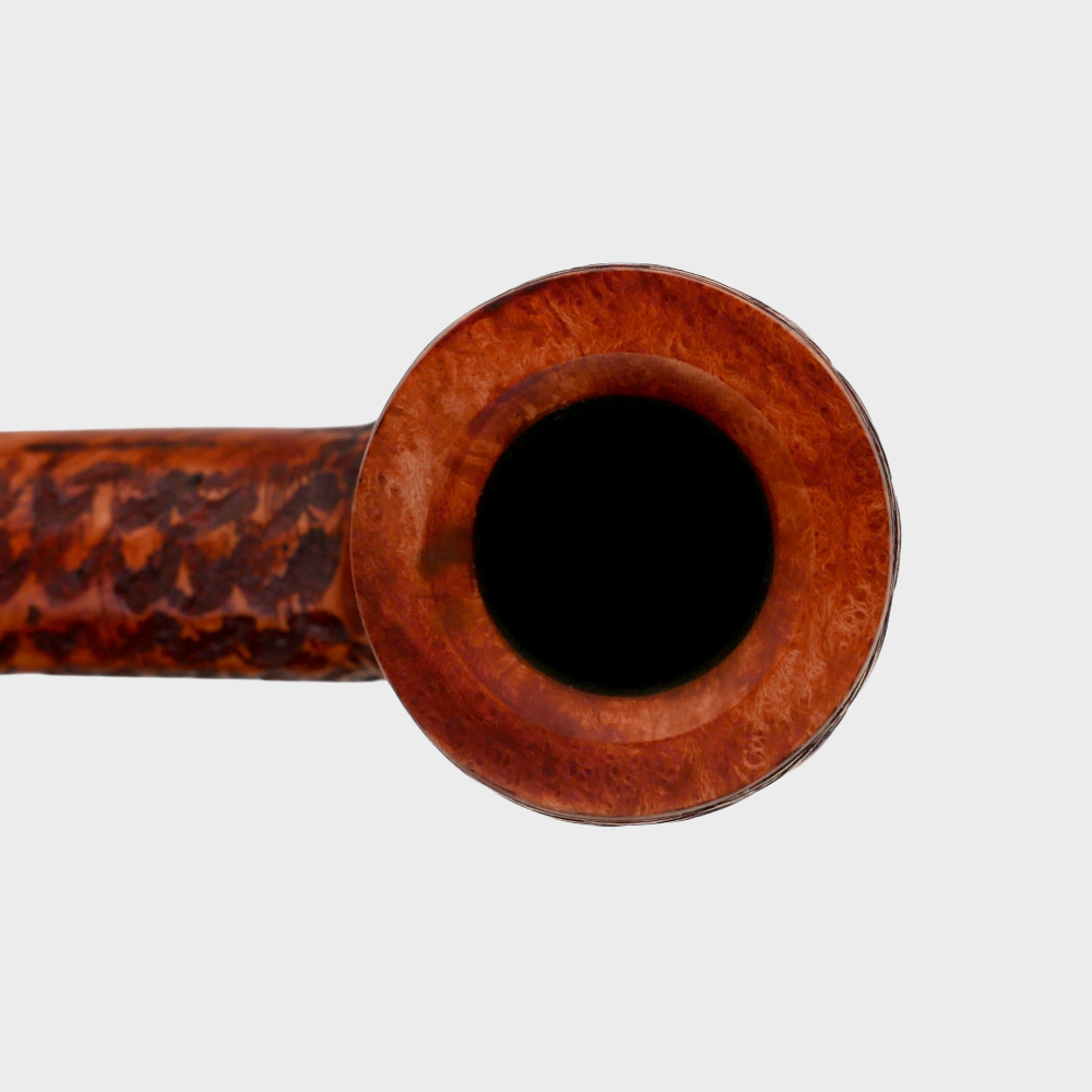 An original pipe with a rusticated finish and a cumberland-like acrylic stem for a perfect rustic look.
