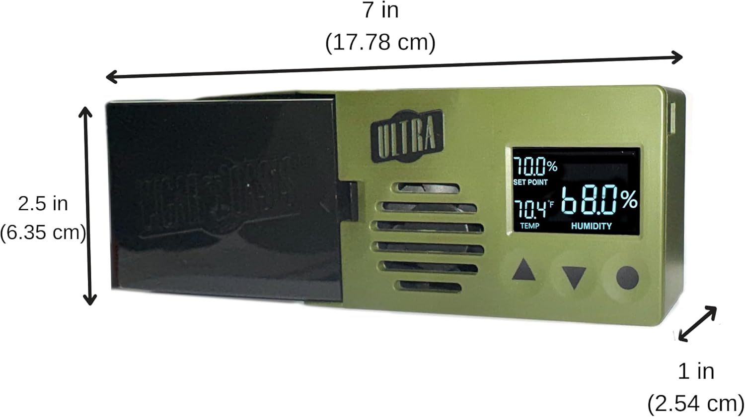 - Supports internal humidor volume up to 2 cubic ft.