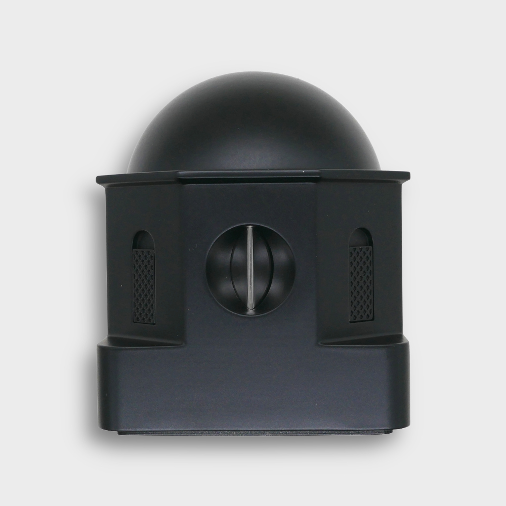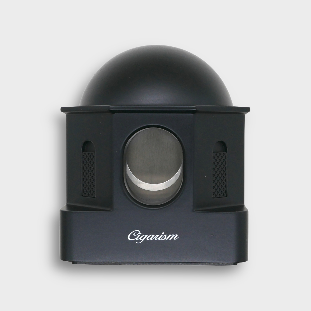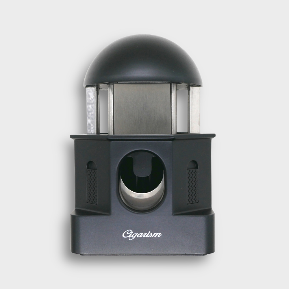 The design of this cutter was inspired by the architectures of Greece Santorini island. The dome of the house is just perfectly comfortably used for push-button of the desktop cigar cutter. The eight walls of the house can be divided into 4 windows and 4 cutter holes.