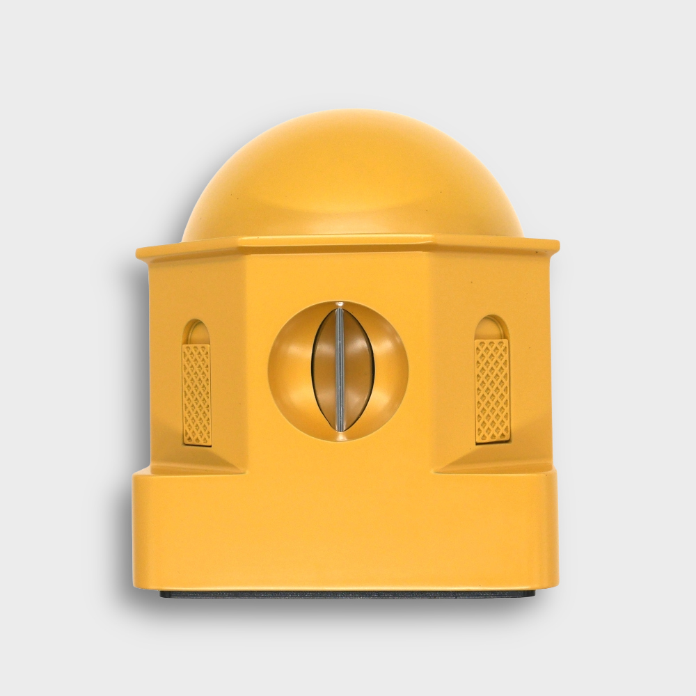 The design of this cutter was inspired by the architectures of Greece Santorini island. The dome of the house is just perfectly comfortably used for push-button of the desktop cigar cutter. The eight walls of the house can be divided into 4 windows and 4 cutter holes.
