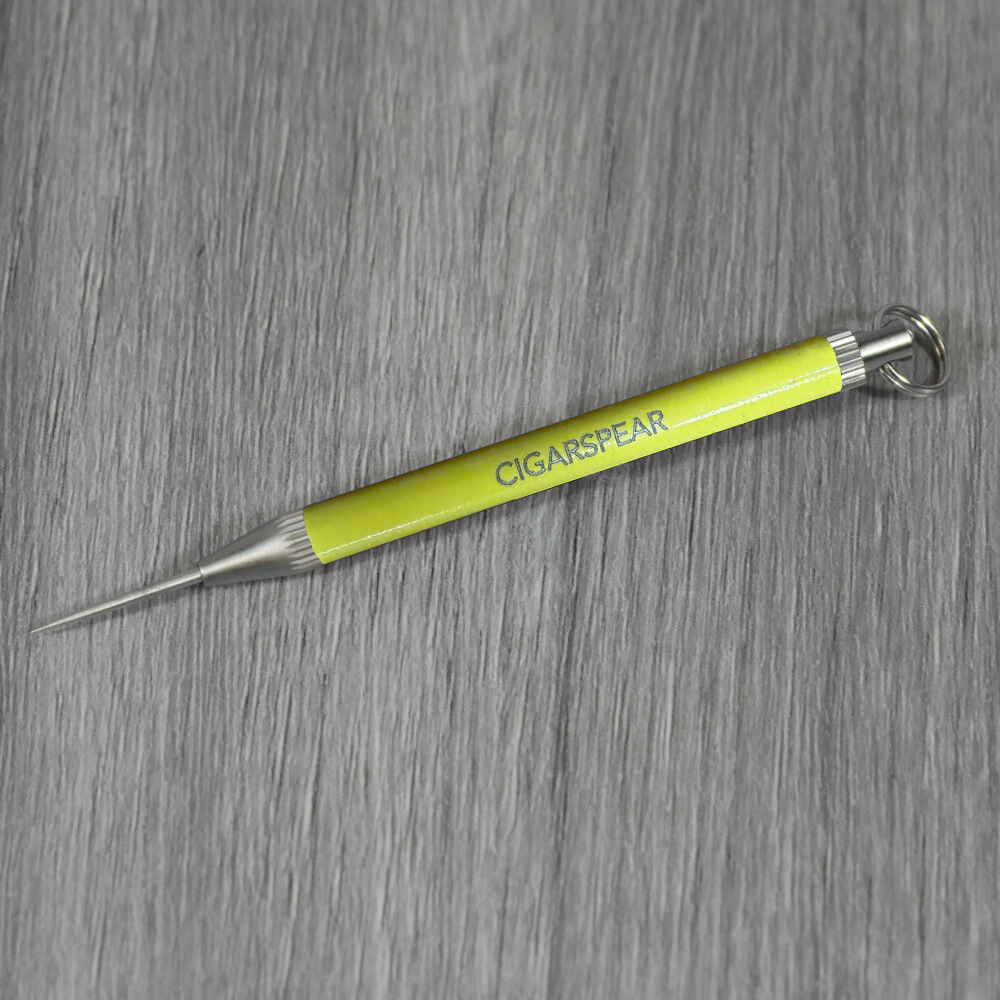 This Cigarspears Cigar Pick is made of brushed grade 5 titanium which is a lightweight strong metal used in the aerospace industry. Titanium has low thermal conductivity compared to other metals so the Cigarspear won’t get hot.