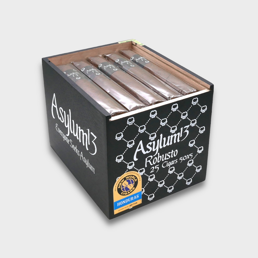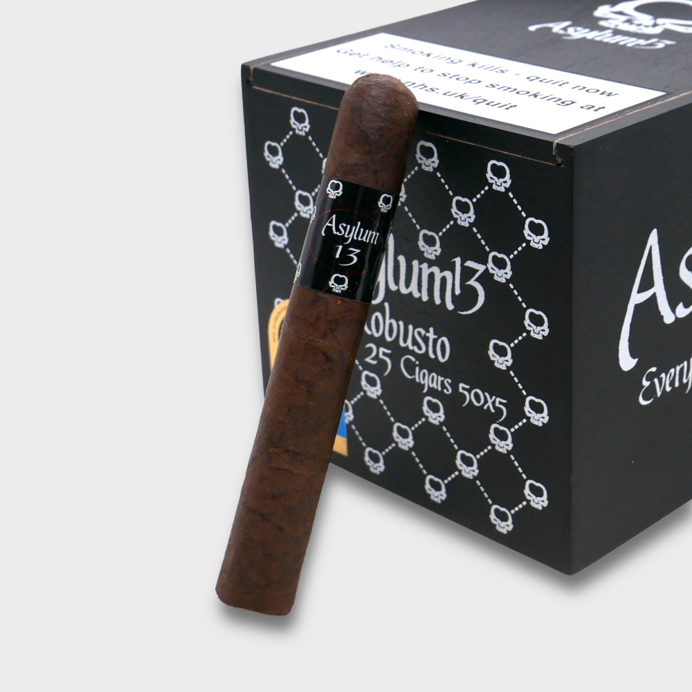 Asylum 13 cigars are true Nicaraguan Puros. A dark Nicaraguan wrapper coats a combination of aged seed, long filler grown throughout the black volcanic soils of Nicaragua. One can expect a slow, cool burn with a medium to full bodied array of flavour. These cigars are eventful throughout and something you don't want to miss out on.