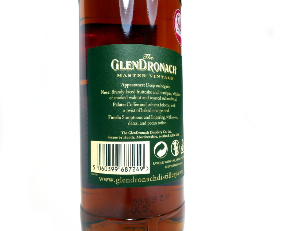 GlenDronach master blender Dr Rachel Barrie described the expression as having ‘rich brandy-laced fruitcake on the nose, cocoa-dusted coffee and sultana brioche on the palate and lingering pecan toffee notes in the finish’.