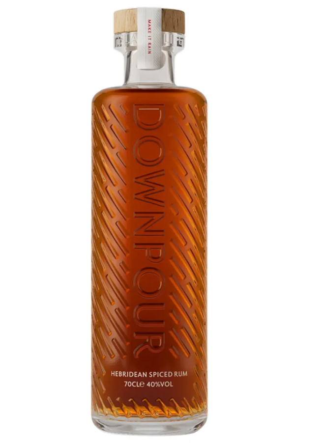 Downpour Hebridean Spiced Rum is a smooth, dark Caribbean rum infused with wild thyme, pepper dulse seaweed, and pineapple weed foraged on North Uist.