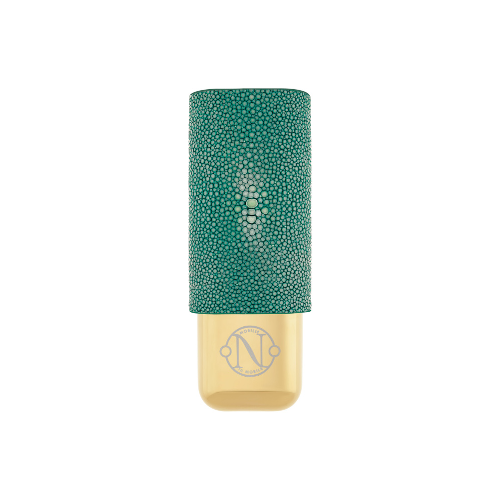 Internal functionalities: Case for 2 cigars. Stingray leather. Golden base with engraved Nautilus logo.
