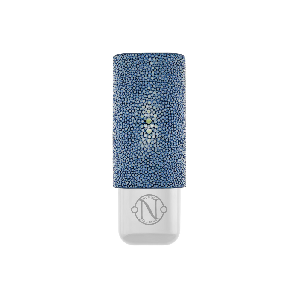Internal functionalities: Case for 2 cigars. Stingray leather. Chrome base with engraved Nautilus logo.