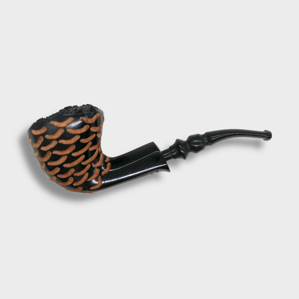 When carving a freehand pipe he tries as much as possible to follow the grain making creative choices when he as to deal with natural defects within the wood. Nørding exclusively uses plateau wood for the Freehand Pipes, the outer part of the briar block where you find the most beautiful texture and appearance of the wood.
