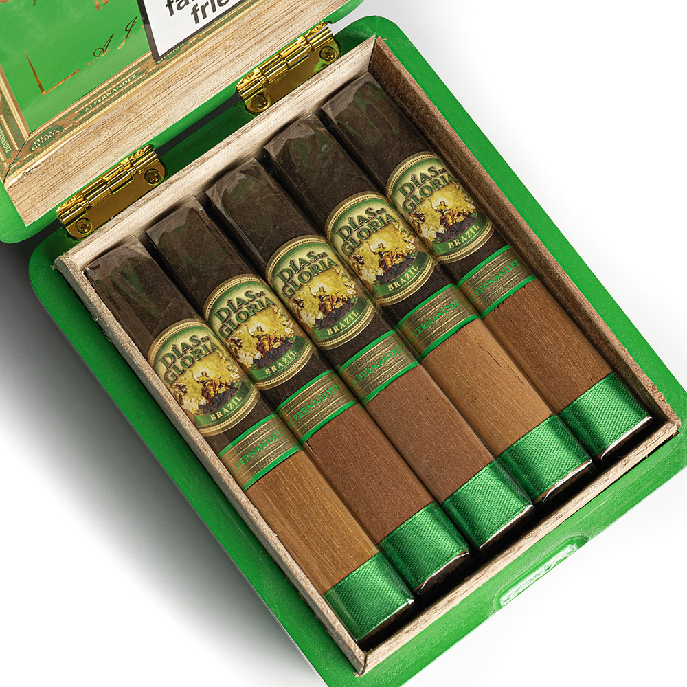 AJ Fernandez Dias De Gloria Brazil translates to Glory Days, which AJ Fernandez attributes to the pre-Cuban revolution days of premium tobacco, back where his family started their tobacco dynasty. Dias De Gloria Brazil celebrates the union of two exceptional worlds of tobacco, honouring the rich roots of Brazil and the legacy of Nicaragua. AJ Fernandez captures the soul of traditional influences with this distinct and vibrant blend.