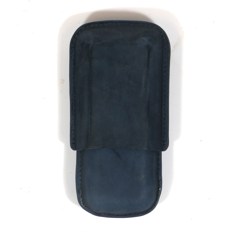 GBD Navy Brushed Leather Cigar Case - 52 Ring Gauge - 2 Finger
