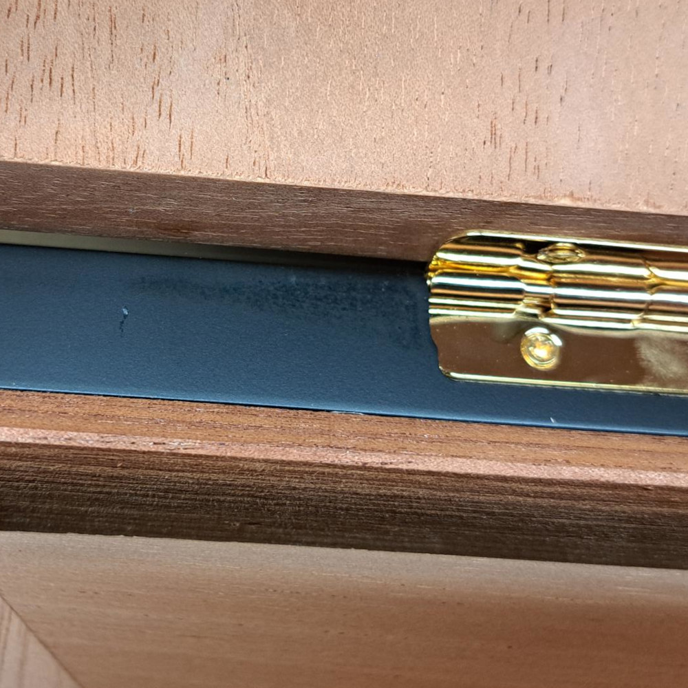 * Hygrometer and humidifier fixed with magnet to invisible metal plate under wood veneer Extra-strong humidor corpus and extra-strong Spanish cedar lining.