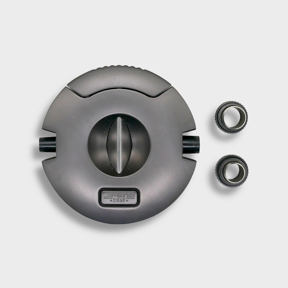 The Jifeng FJ-JV006 V-Cutter is a precision cigar cutter designed to deliver a clean, defined V-cut that enhances draw and intensifies flavour. Crafted with sharp stainless-steel blades and a durable, ergonomic body, it offers reliable performance whether enjoyed at home or while travelling. Adding to its versatility, the cutter also features two different-sized punch cutters discreetly positioned on either side, allowing you to choose the perfect cut for a variety of ring gauges. Practical, compact, and multi-functional, the FJ-JV006 is a dependable addition to any cigar enthusiast’s collection.