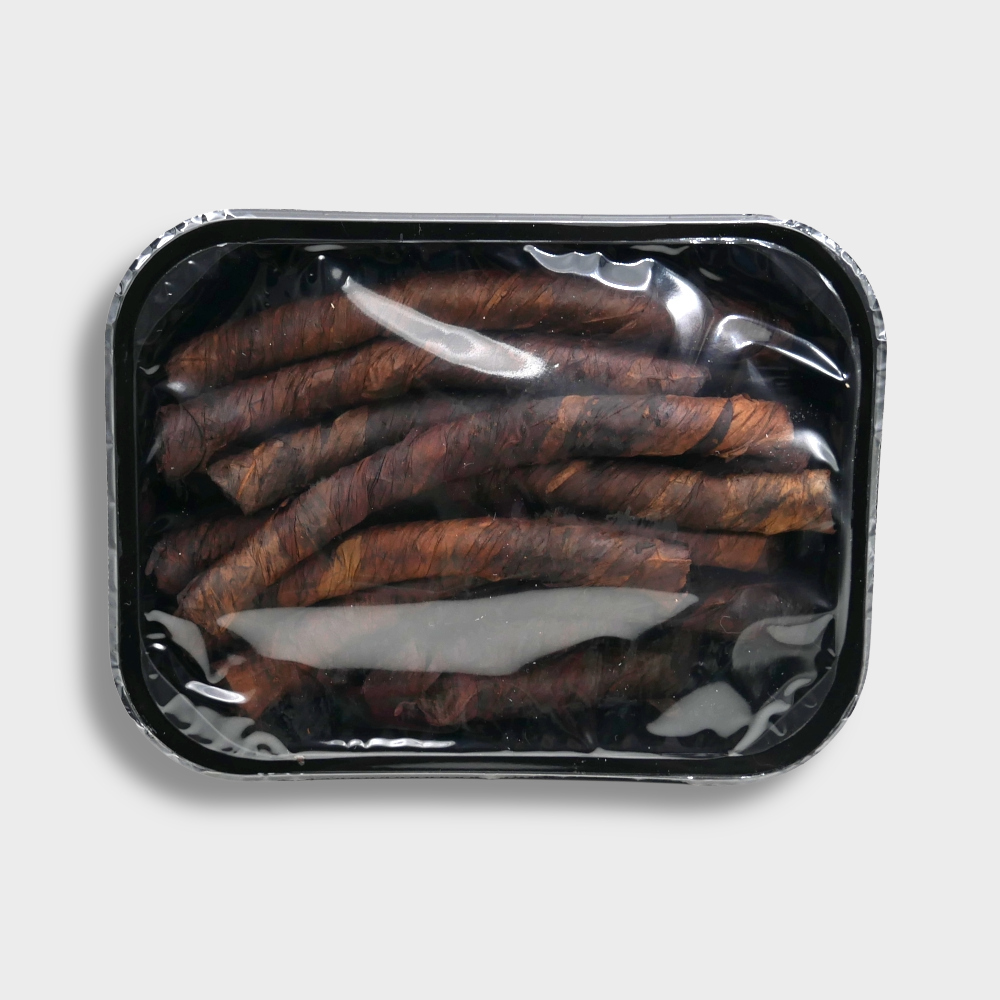 Kendal Extra S Brown Pigtail is a strong, full-bodied pipe tobacco made from dark-fired Virginia leaf spun into a thin rope and sweetened with maple syrup. It is a twist tobacco that can be sliced for pipe smoking or used for chewing and is recommended for experienced smokers due to its high nicotine content.