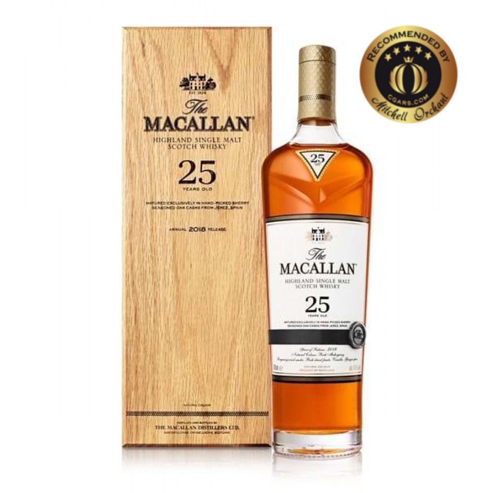 The Macallan Sherry Oak 25 years old forms part of Macallan's Sherry Oak range which features a series of single malt whiskies matured exclusively in hand-picked sherry seasoned oak casks from Jerez for richness and complexity.