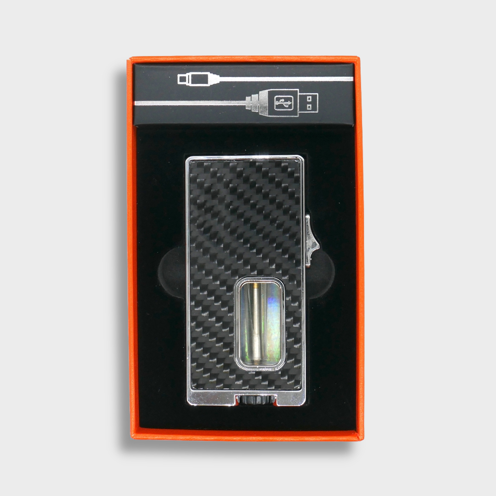This lighter is an impressive blend of innovation and elegance. Its combination of a wide flat flame and a wrist-activated ignition gives it a unique, almost theatrical flair. The safety features, premium materials, and stylish Carbon fibre finish make it a sophisticated tool for enthusiasts.
