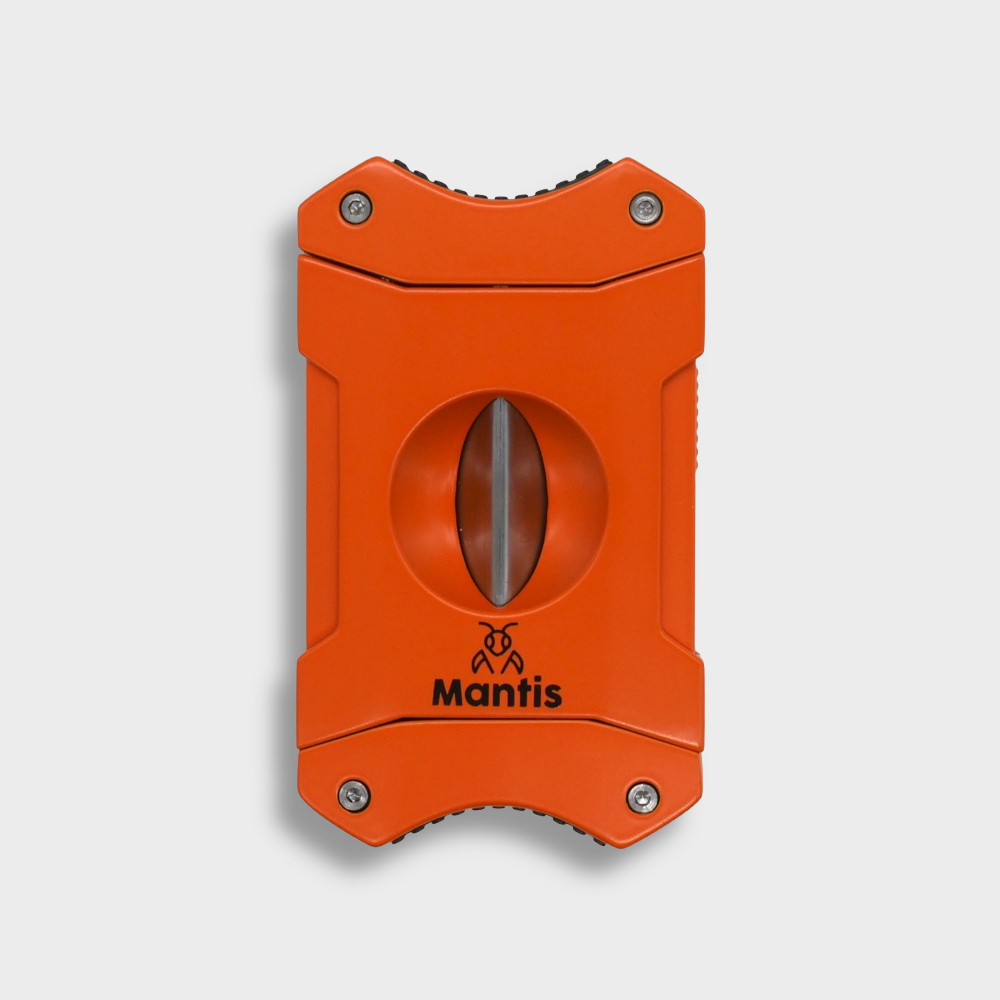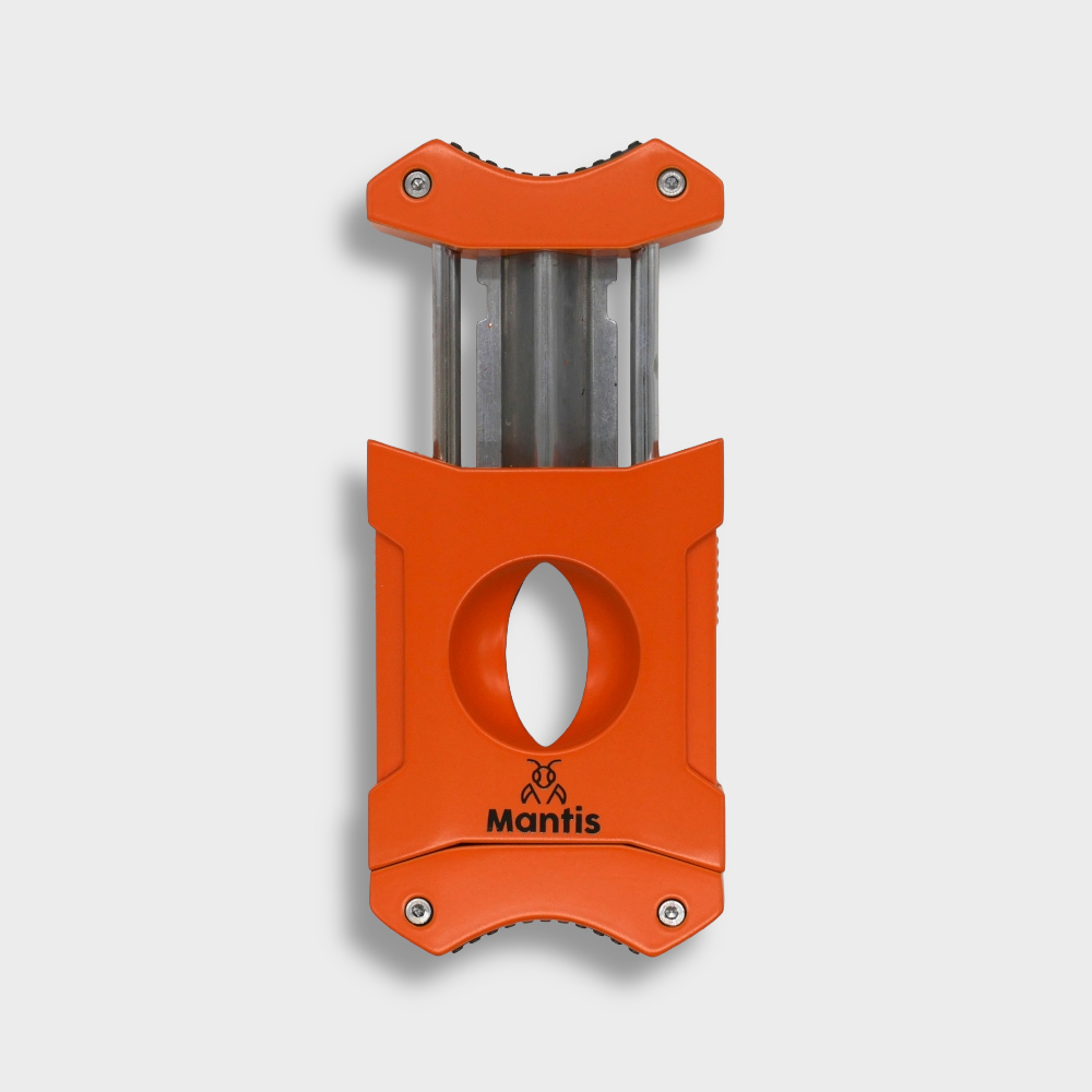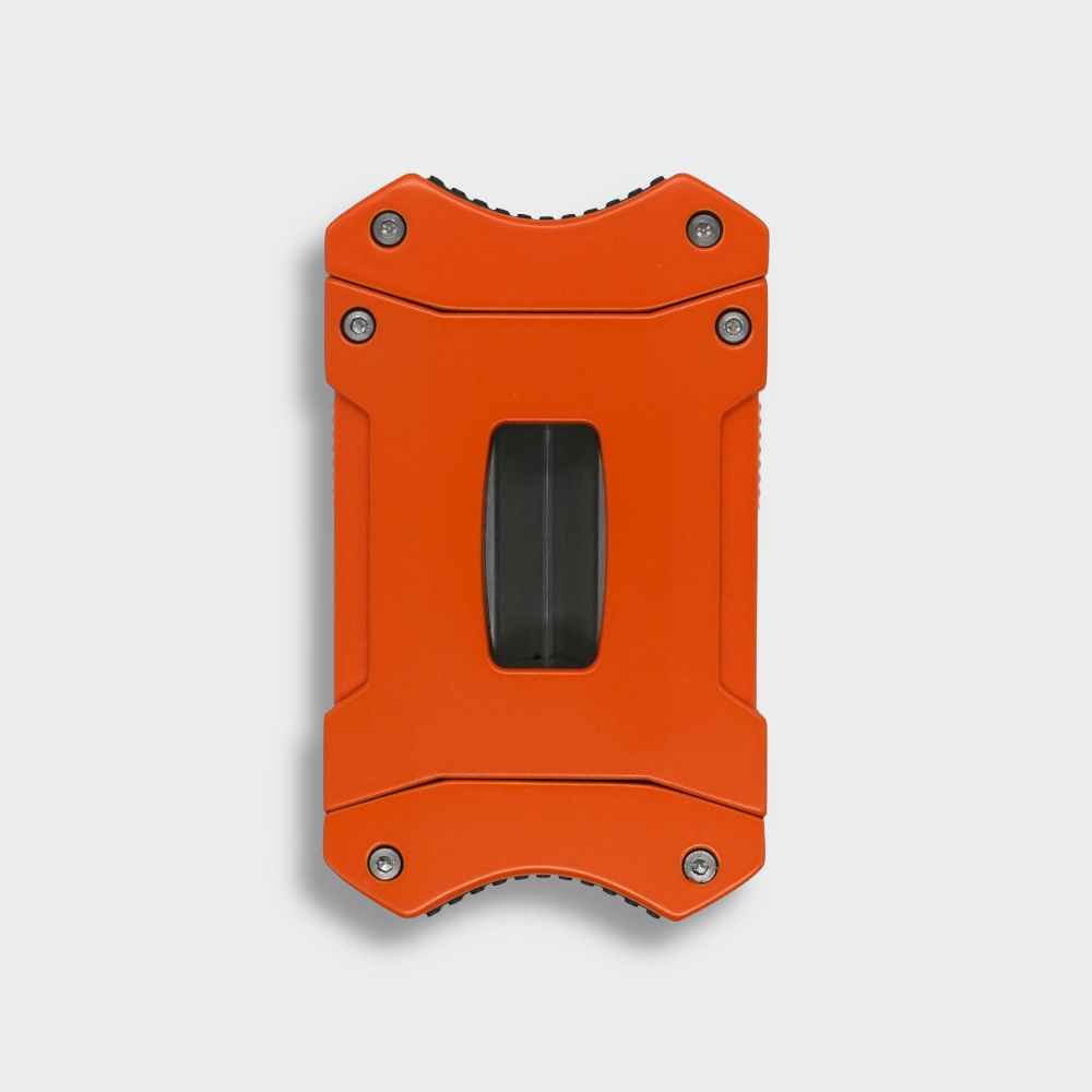 Precision meets presence. This solid metal V-cutter is crafted for those who appreciate weight, balance, and effortless performance. Its bold, rectangular body - finished in a striking matte orange - feels substantial in the hand, exuding luxury and confidence.