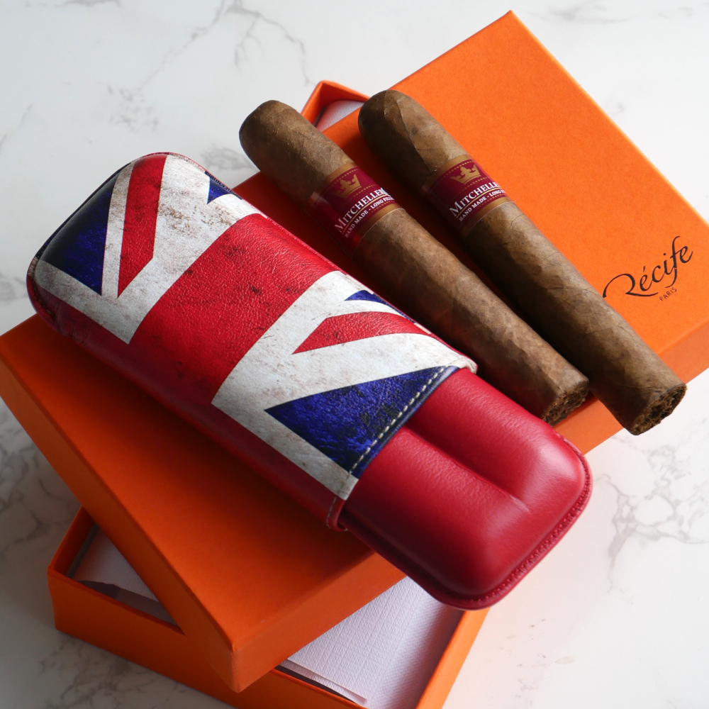 Elevate your cigar experience with this exclusive Dominique London x RECIFE Special Edition cigar case. Crafted by the renowned French artisans at RECIFE, this premium leather case combines heritage craftsmanship with a bold Union Jack design, making it a stylish companion for your cigars and a statement piece for any aficionado.