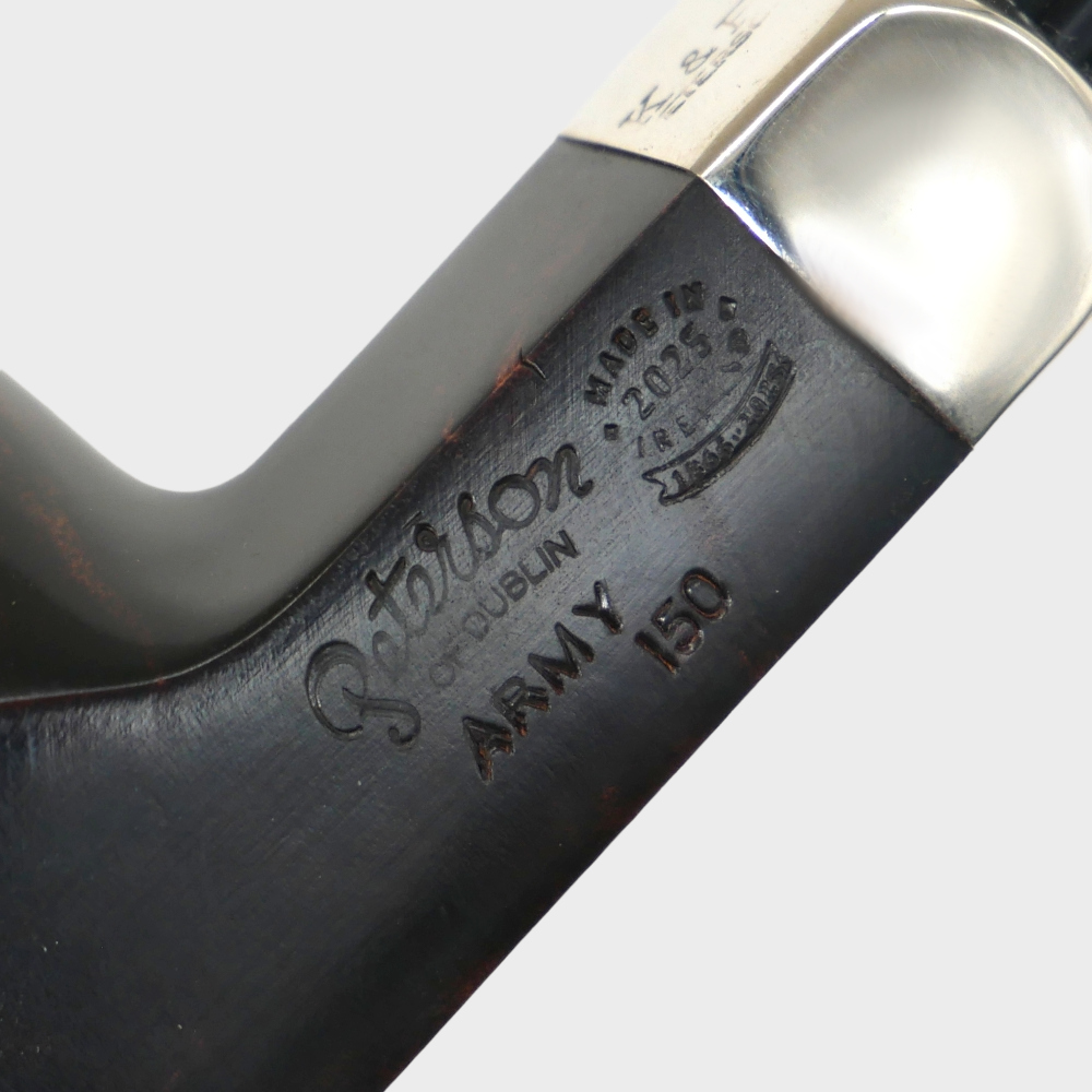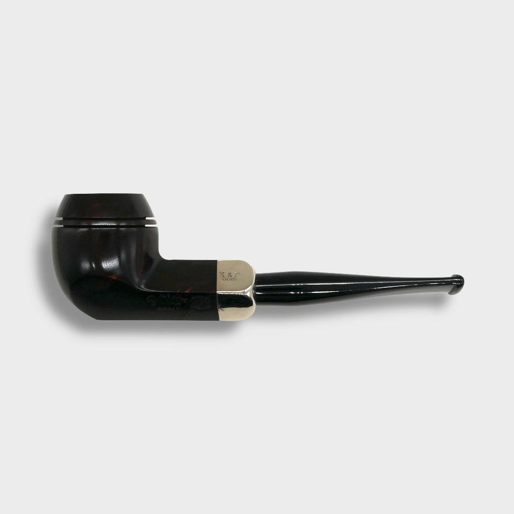 Combining the timeless aesthetic and convenience of the Irish Made Army series with 9mm drilling, Army Filter pipes enjoy the rare combination of accommodating a filter and also featuring an army mount, allowing the pipe to be disassembled while smoking. Utilising hand-shaped nickel mounts and divided across a range of Peterson's most popular shapes, the Army Filter series is available in either smooth, walnut Heritage finish or a dark-stained sandblast.