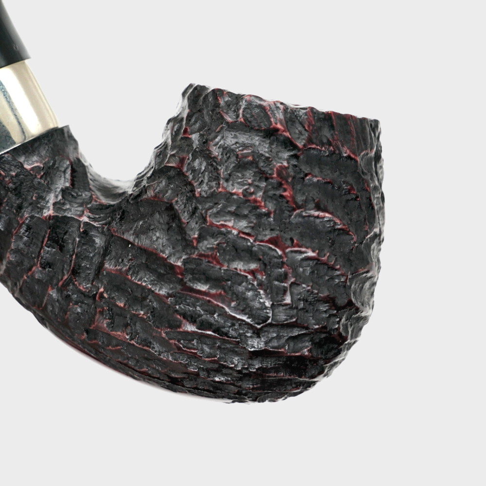 The briar on all Donegal Rocky pipes is sandblasted, for an old, rustic look, while the nickel band adds to the elegant look of the pipe.