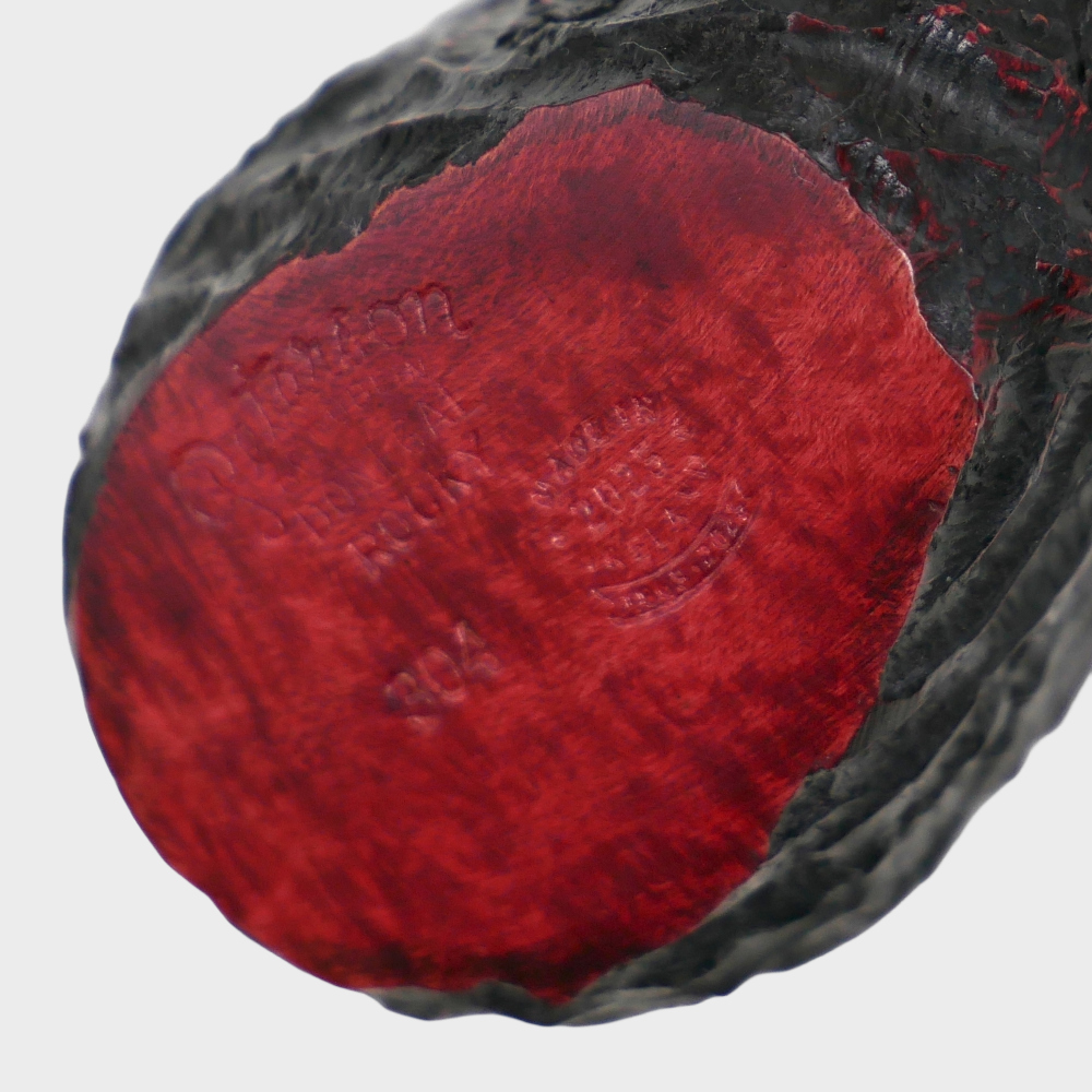The briar on all Donegal Rocky pipes is sandblasted, for an old, rustic look, while the nickel band adds to the elegant look of the pipe.