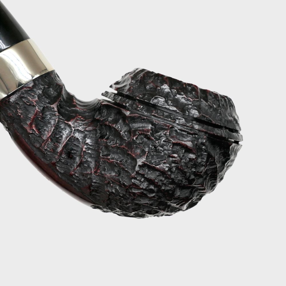 The briar on all Donegal Rocky pipes is sandblasted, for an old, rustic look, while the nickel band adds to the elegant look of the pipe.