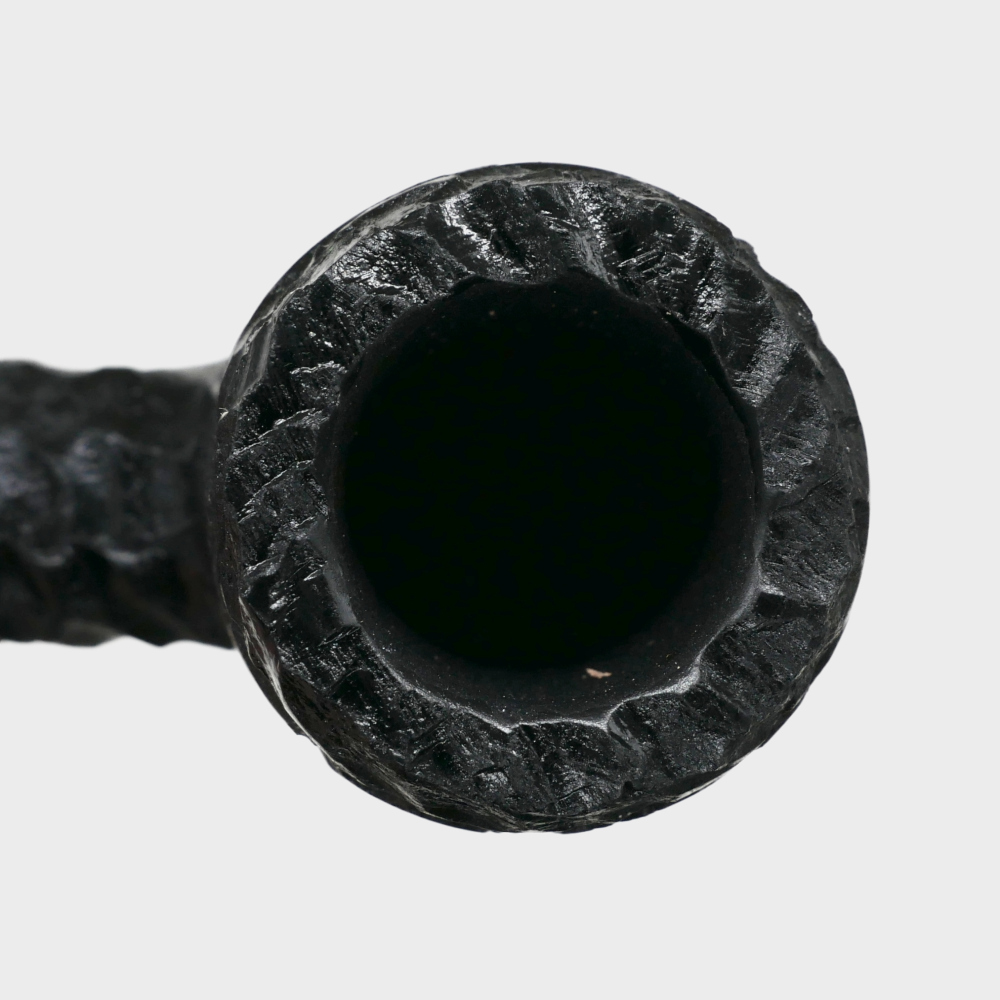 Sitting beautifully between the flawless black ebony bowl and the striking red and black marbled fishtail mouthpiece, there is a perfectly proportioned nickel band with the Dracula name etched on to it.